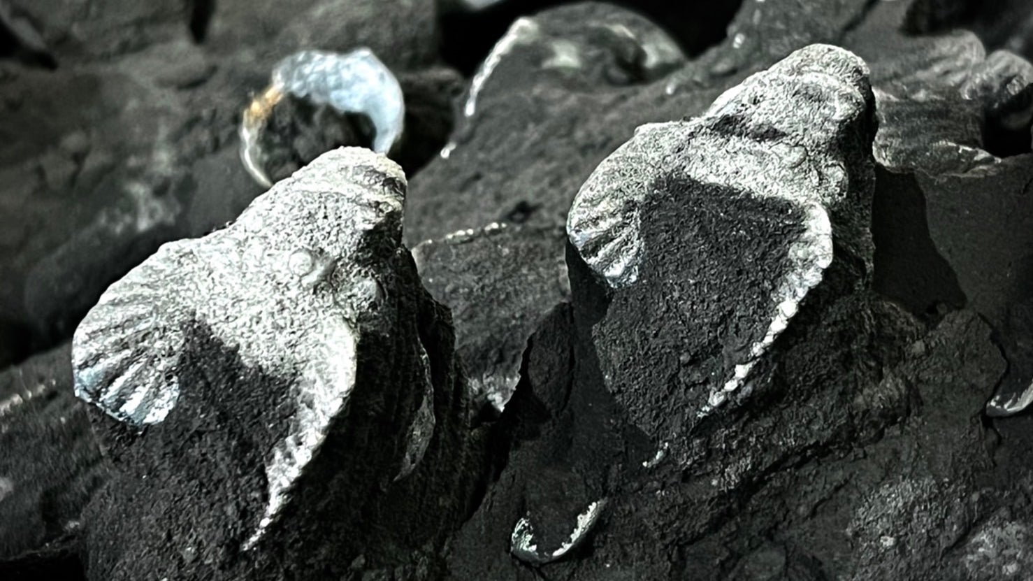鋳造後、型から掘り出されたオコゼ鉄玉。