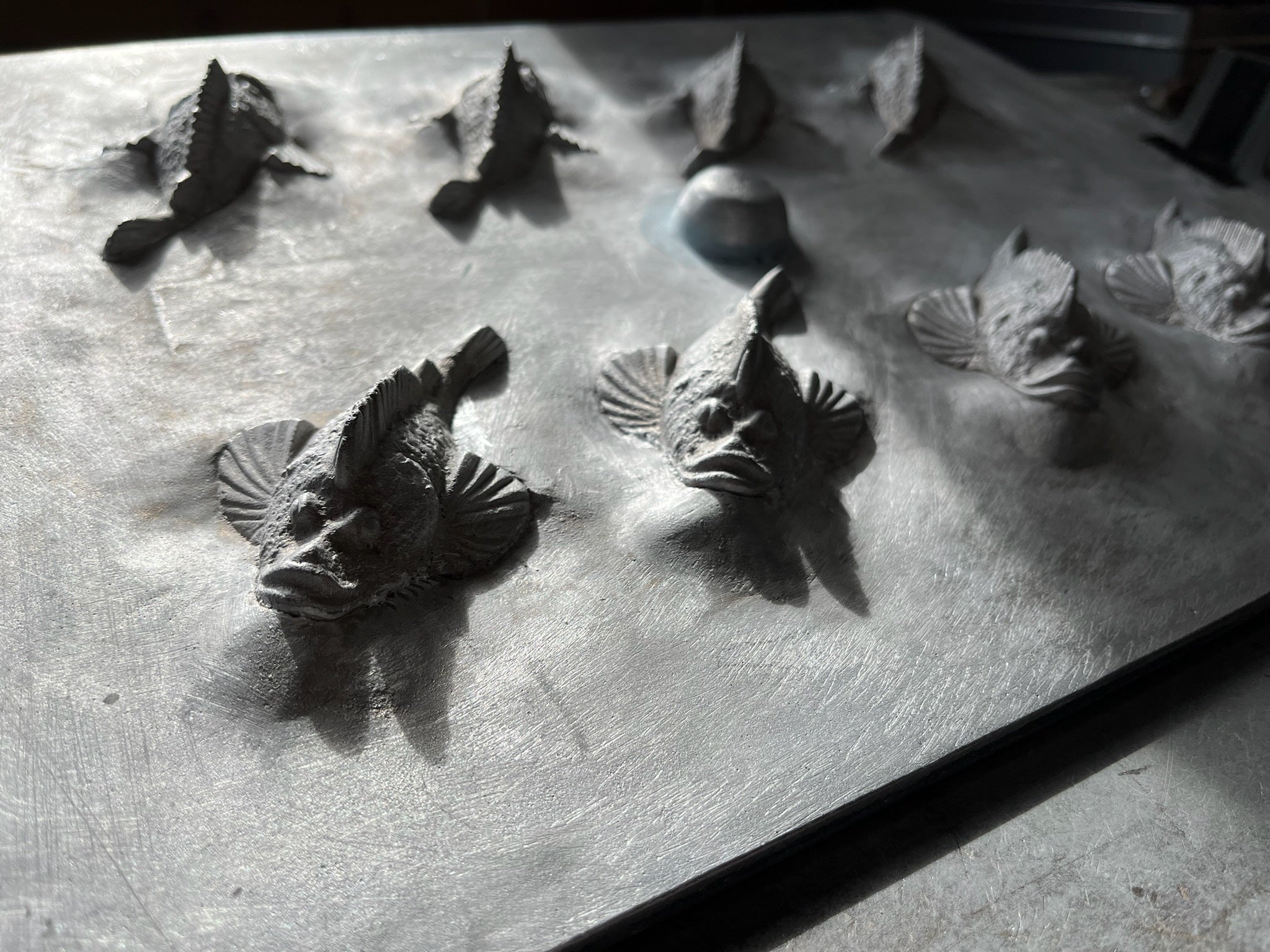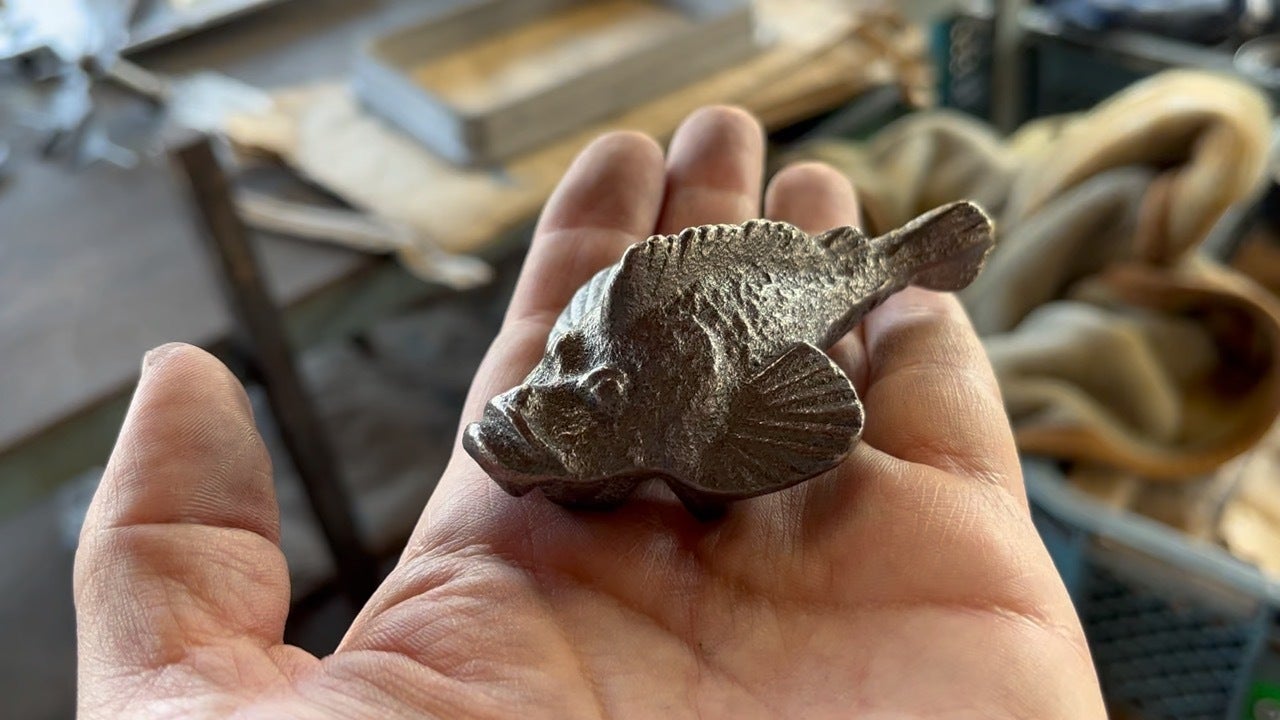 及富さんと様々なプロダクトを進めてきたこの1年間。作品が生み出されるまでのいくつもの工程とそこにかける職人の想いや仕事を目の当たりにし、やって良かったなと心から思っています。オコゼ鉄玉の金型が完成し、初めての鋳造、仕上げ、ひとつずつ作品として命が吹き込まる瞬間は感動の連続でした。気持ちのこもったオコゼ鉄玉を早く皆様に届けたいです。