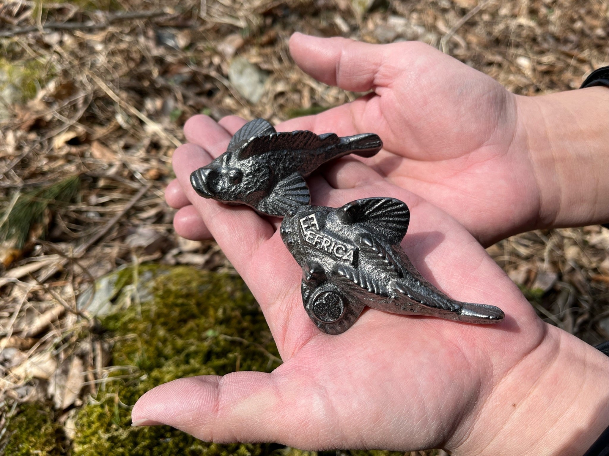 EFRICAは2021年6月に誕生しました。 岩手を代表する南部鉄製品は当初から一番の目玉として構想の中にあり、EFRICA立ち上げ前より、県内の工房を訪ね歩き、製品の製造先を探して歩きました。その中でたどり着いたのが奥州市水沢の及富さんです。私を出迎えてくれたのは専務の菊地章さんと息子さんで次代を担う海人さん。具体的なカタチがあればすぐにサンプルを作りますよと。こちらが拍子抜けするほどのフットワークの軽さに驚きを隠せない私に、うちとしてもアウトドア関係はやってみたかったと後押しまで。EFRICAにとって素晴らしい出会いでした。オコゼとマタギの話をしたときも専務からぜひオコゼで鉄玉をやりましょう!と。それで決まったのがオコゼ鉄玉です。