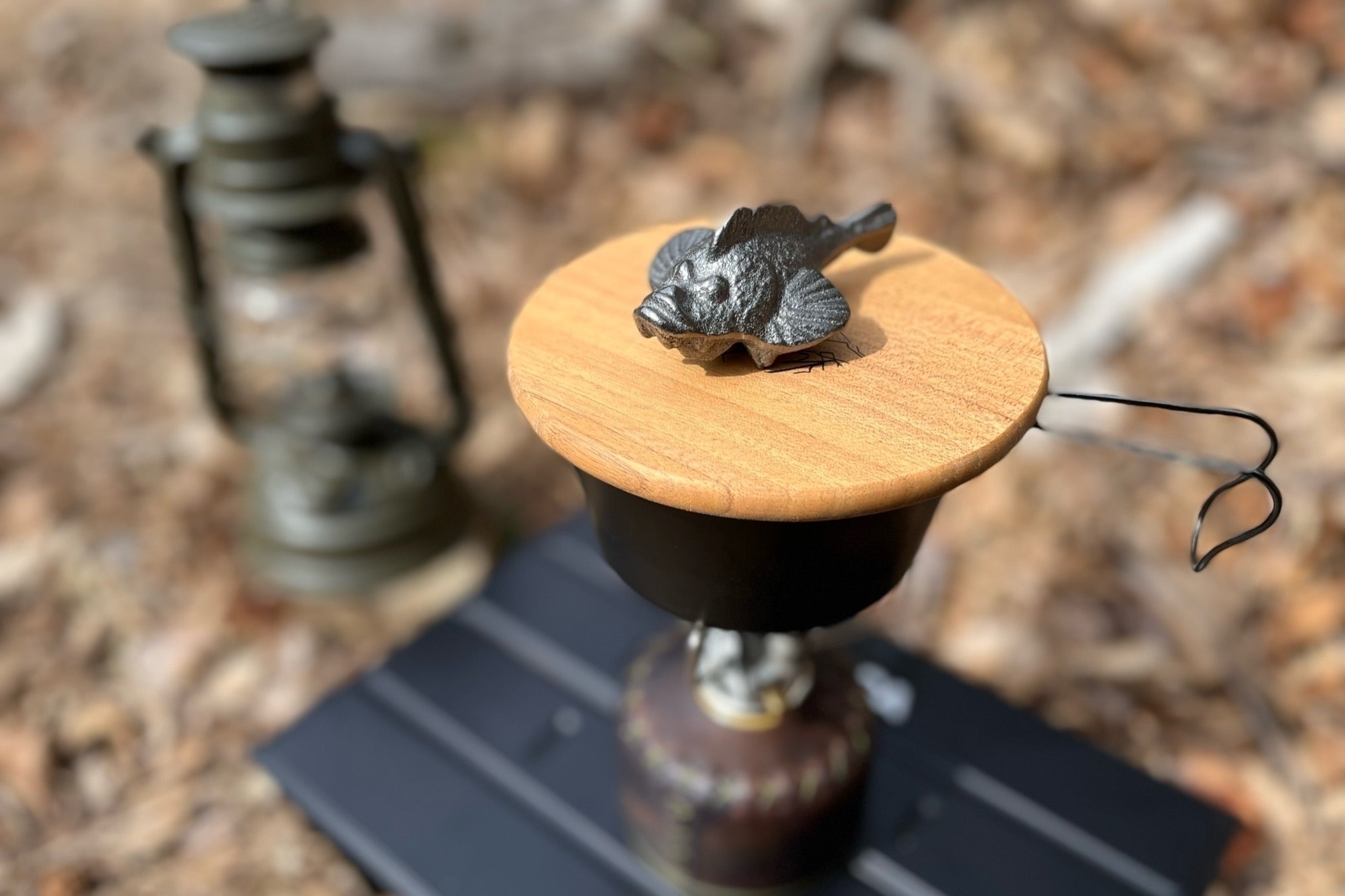 山に入ったらオコゼご飯を。オコゼ鉄玉を入れてご飯を炊く!または、オコゼを入れたケトルで湯を沸かしコーヒーをいただく!など本来の鉄分補給としての使い方はもちろん、メスティンやシェラカップのフタの重しとしても使えます。つまりインでもオンでもOK!!
