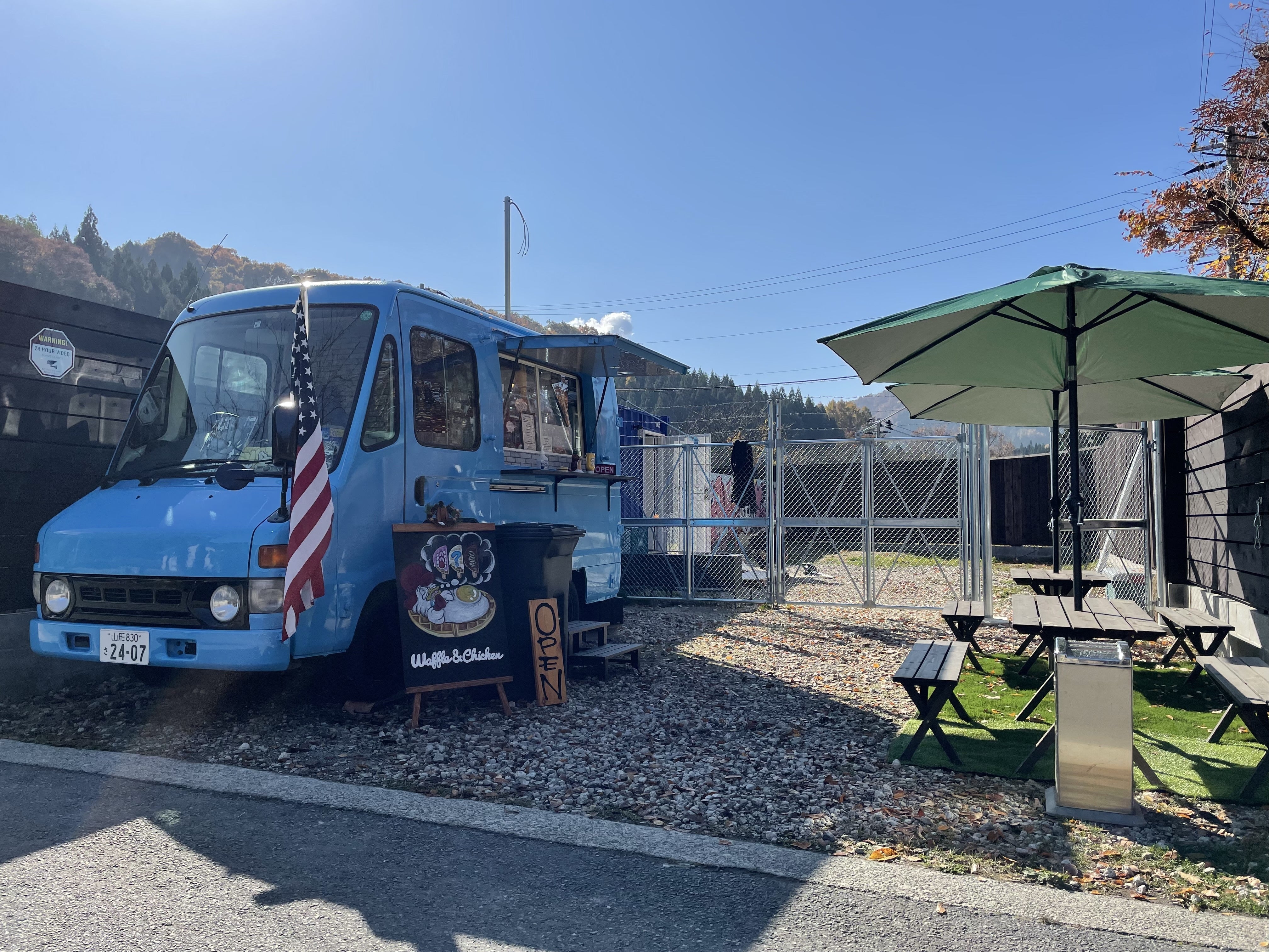現在、同敷地内でキッチンカーも併設して営業しております。勿論、ワンちゃんとご一緒に食べる事も可能です。