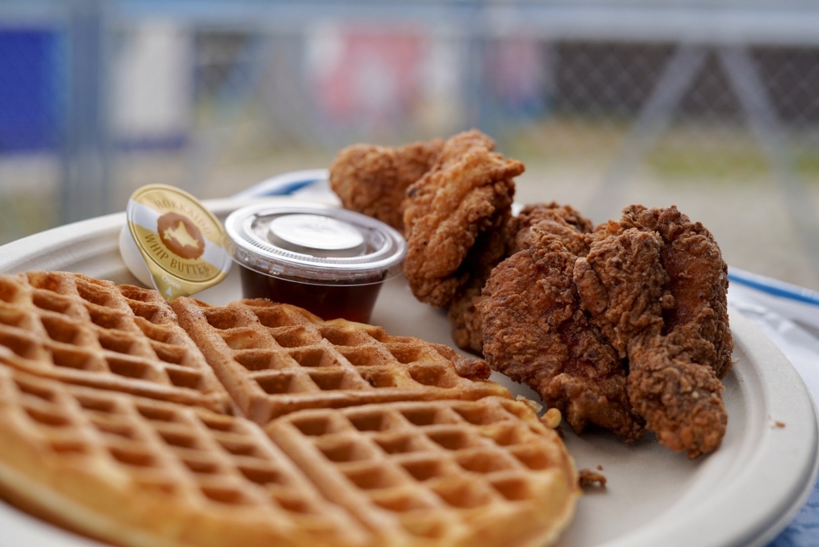 キッチンカーで提供している大人気の「ワッフル&チキン」