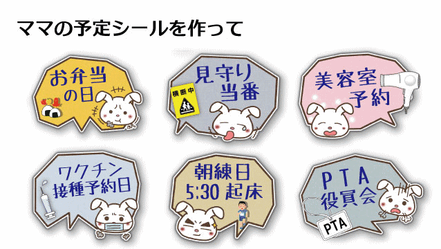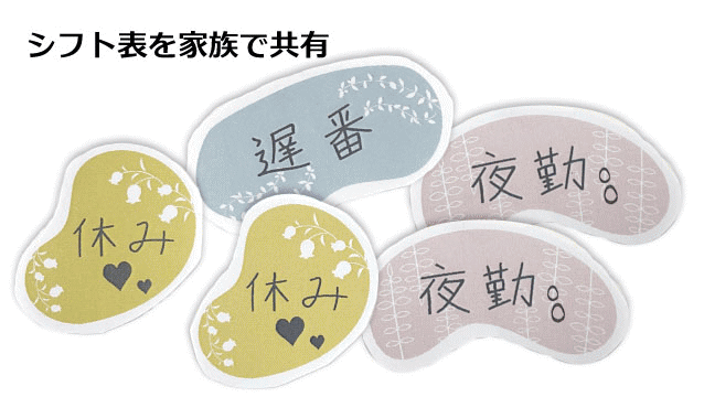 普段のゴミ出し、通院、美容院、食事会、荷物の届く日、シフト管理など、曜日で管理できることなら、アイデア次第で何にでも利用できます。