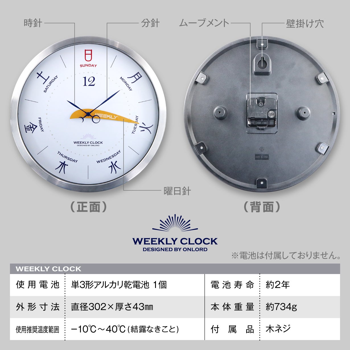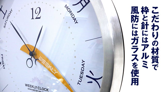 週時計『今日はなん曜日?』は、壁に掛けても置いても使いやすい直径30cm。デザインもシンプルだから、どんな部屋にも合わせやすく自然に部屋の中に溶け込みます。ベゼル(枠)も、ギラギラしすぎず適度な光沢感を再現するために、ヘアライン仕上げとしました。