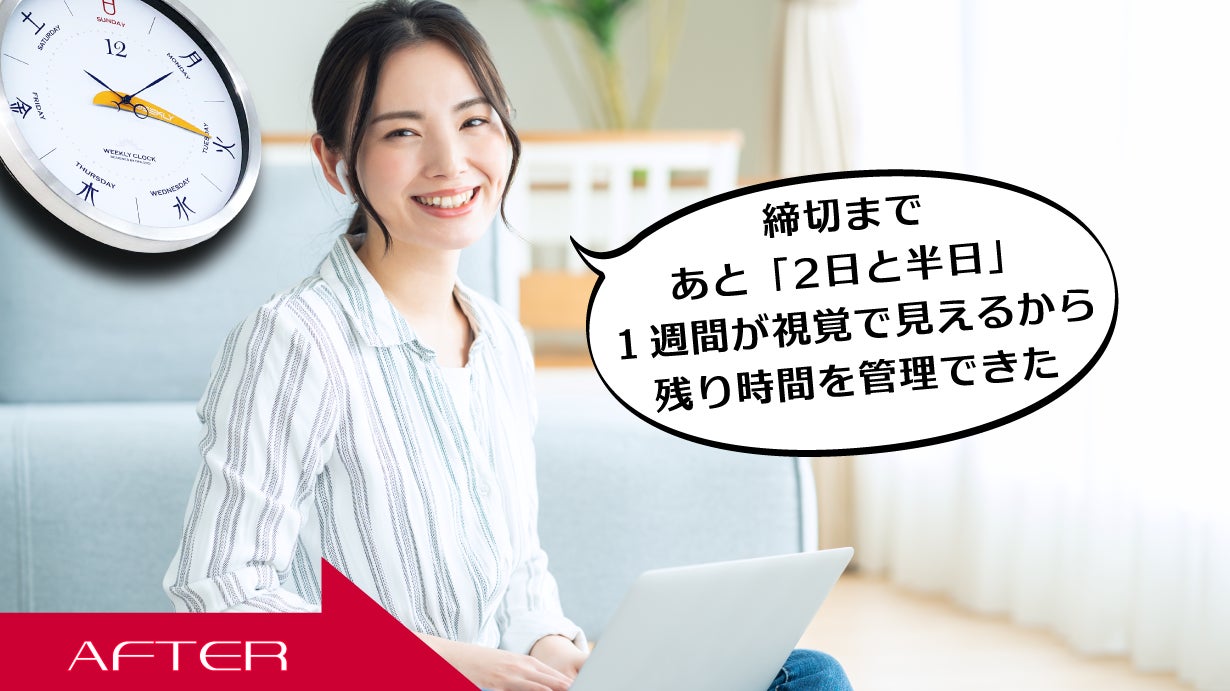 うっかり忘れてしまいそうな予定でも、リビングに 週時計『今日はなん曜日?』を置いて付箋を貼れば、あら不思議!忙しいお母さんの「週間予定表」に早変わり。