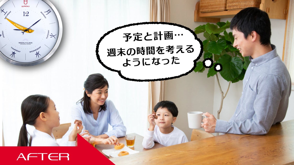 週時計『今日はなん曜日?』で、1週間分の家族の予定を共有することで、声掛けが発生し、家族のコミュニケーションツールとしても活用できます。