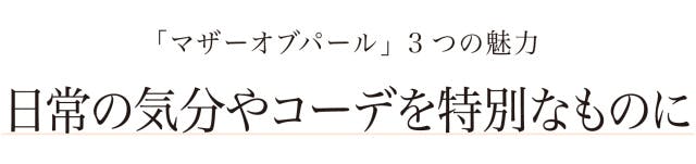 そんなときに一つとして同じ模様はなく、見る角度や光の当たり方によって、様々な表情を見せてくれるマザーオブパールがあれば、普段の装いの「あとちょっと物足りない」を解決してくれます。