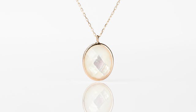 今回ジュエリーに仕立てた宝石は、『マザーオブパール』。その中でも白真珠の母貝である白蝶貝は、上品なミルキーホワイトのお色味がとっても美しく思わずうっとりしてしまう宝石です。