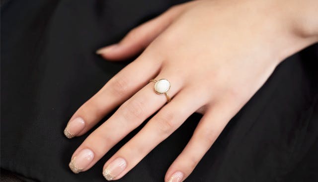 マザーオブパールは、"キラキラした宝石は今日のお出かけには主張が強すぎるけど、金属だけのアクセサリーだと少し物足りない。"そんな時にピッタリな宝石です。