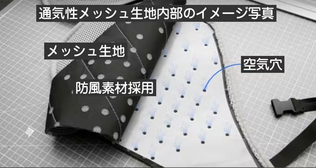 空気穴が内蔵された通気性メッシュ素材をシート素材として採用。