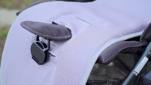 クーラーファンシートとチャイルドシート・ベビーカーとを固定するバックルをより頑丈なものに。シートが簡単にずれないようにしました。