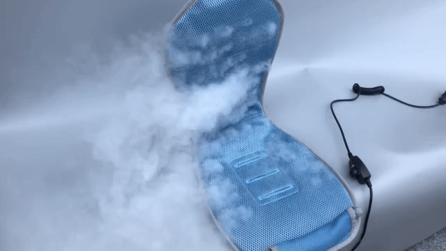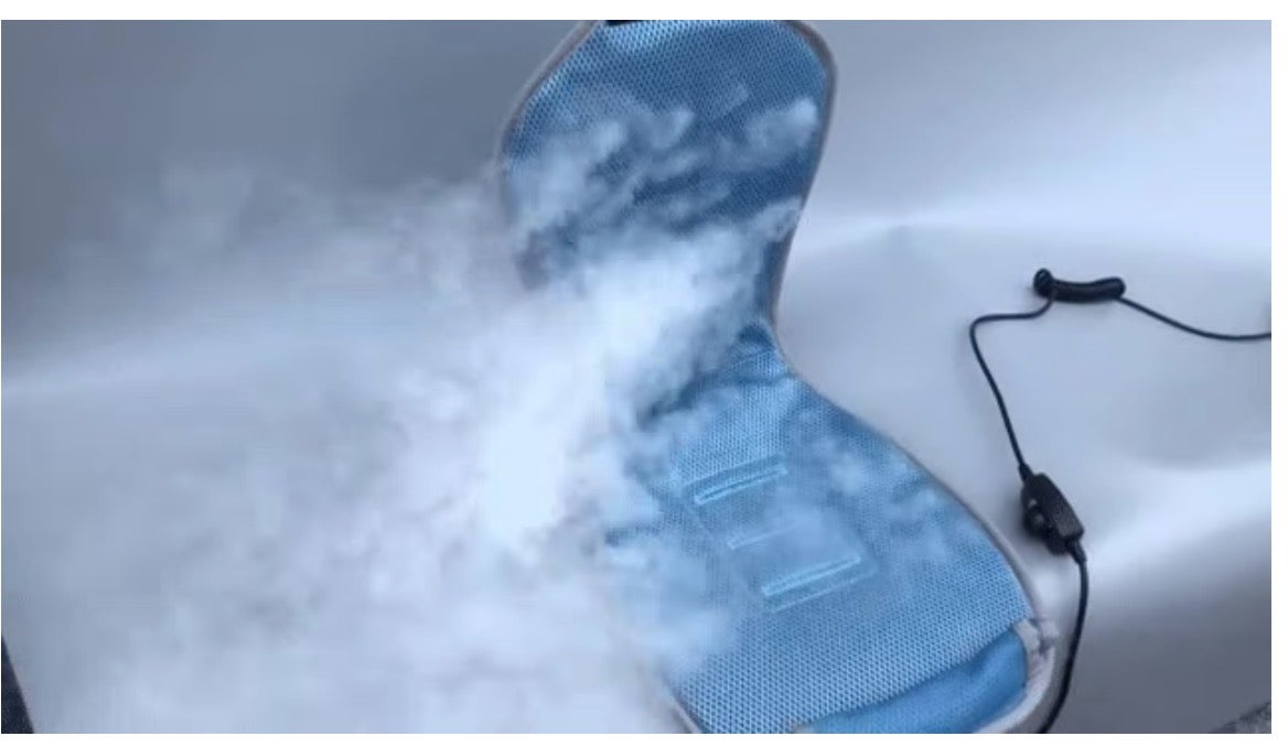・送風ファンがイスと人との間に空気の流れを起こす事によってお尻・背中の蒸れを解消。車内ではエアコンと組み合わせることで、マイナス22℃を実現!