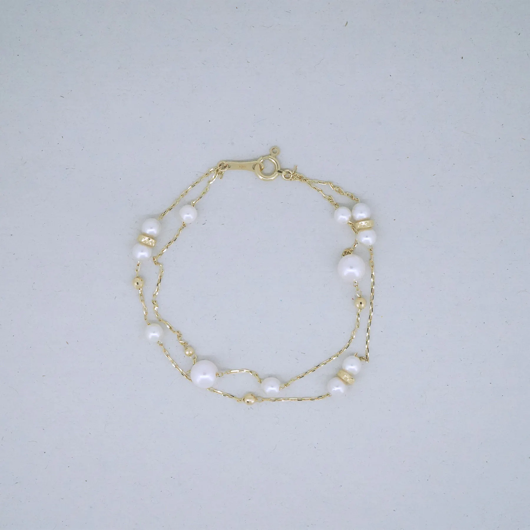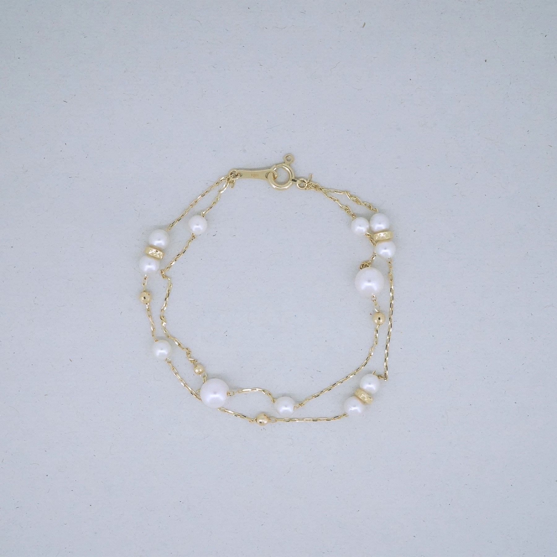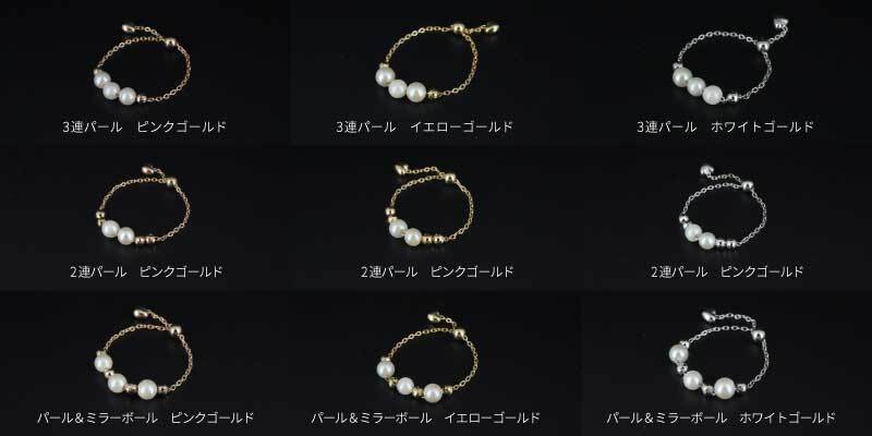 2サイズのパールを使用したブレスレットです。