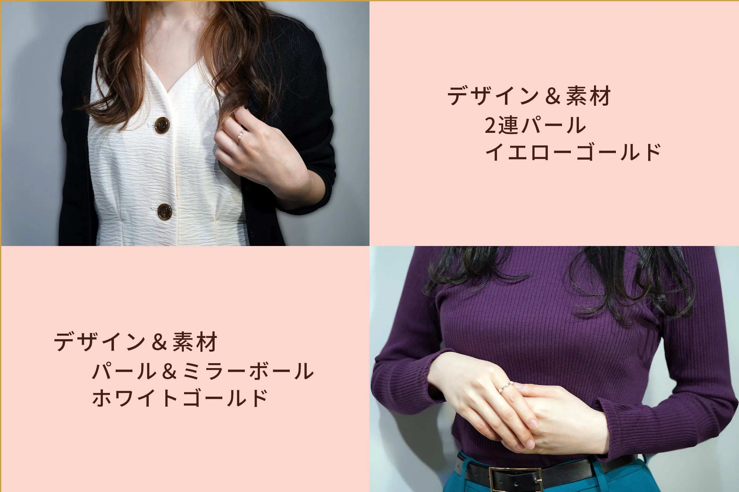 素材はプラチナ(Pt900)とゴールド(K18YG)をご用意しております。