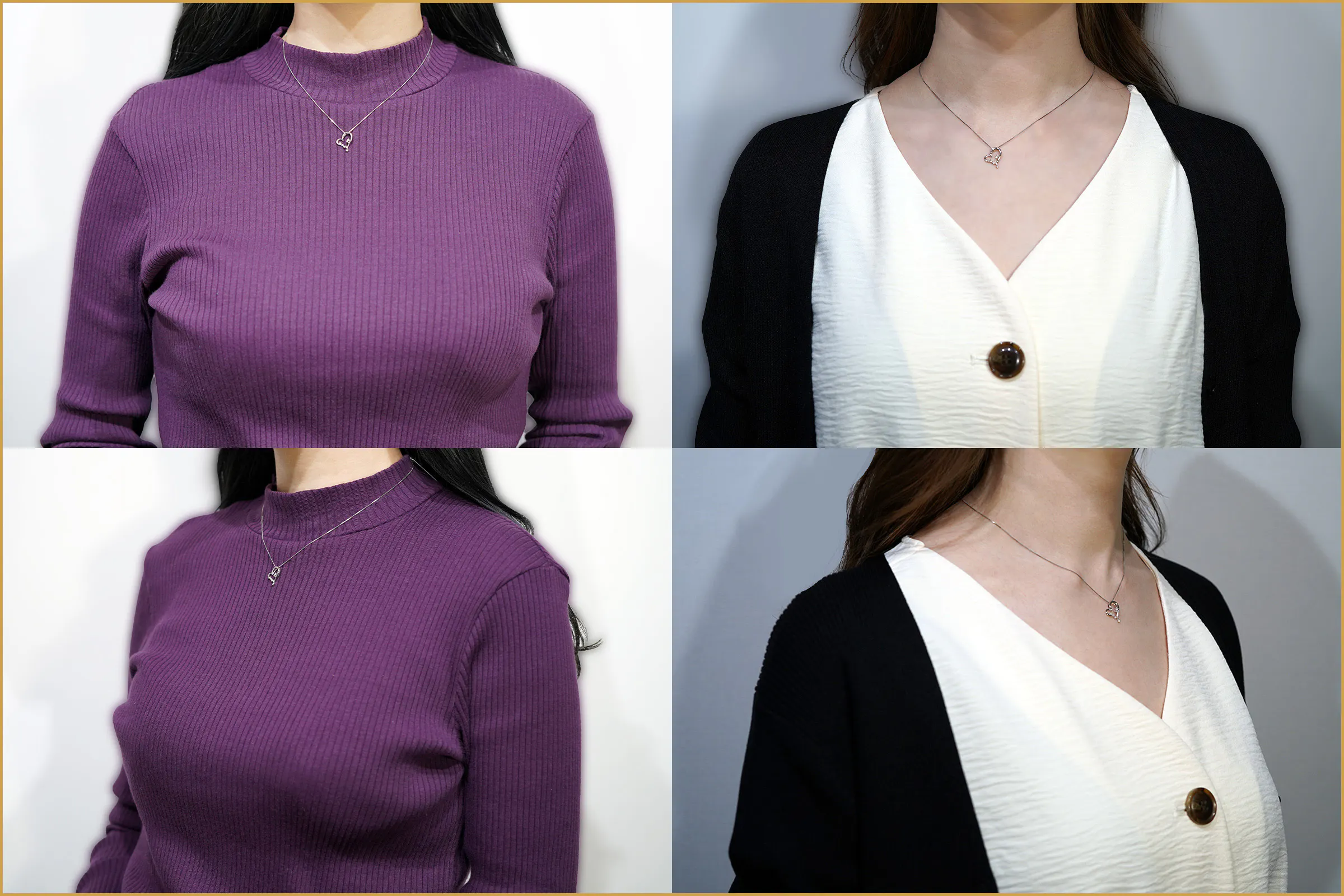 ペンダントが小ぶりなので、ハートモチーフでもかわいくなりすぎない仕上がりになります。