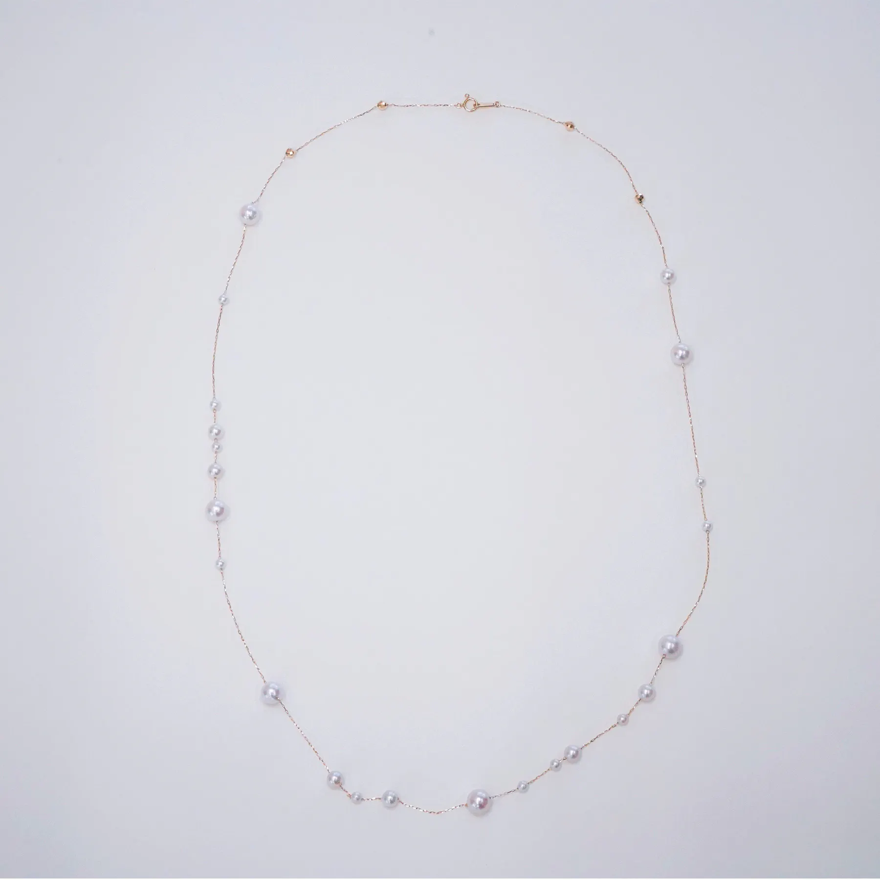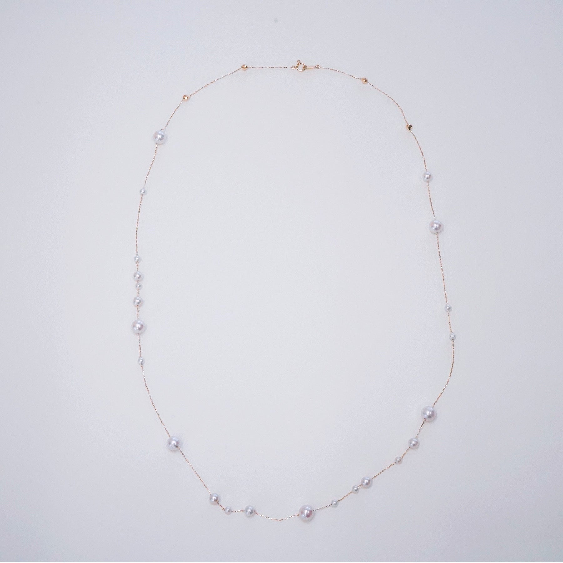 3サイズのパールが散りばめられたネックレスです。