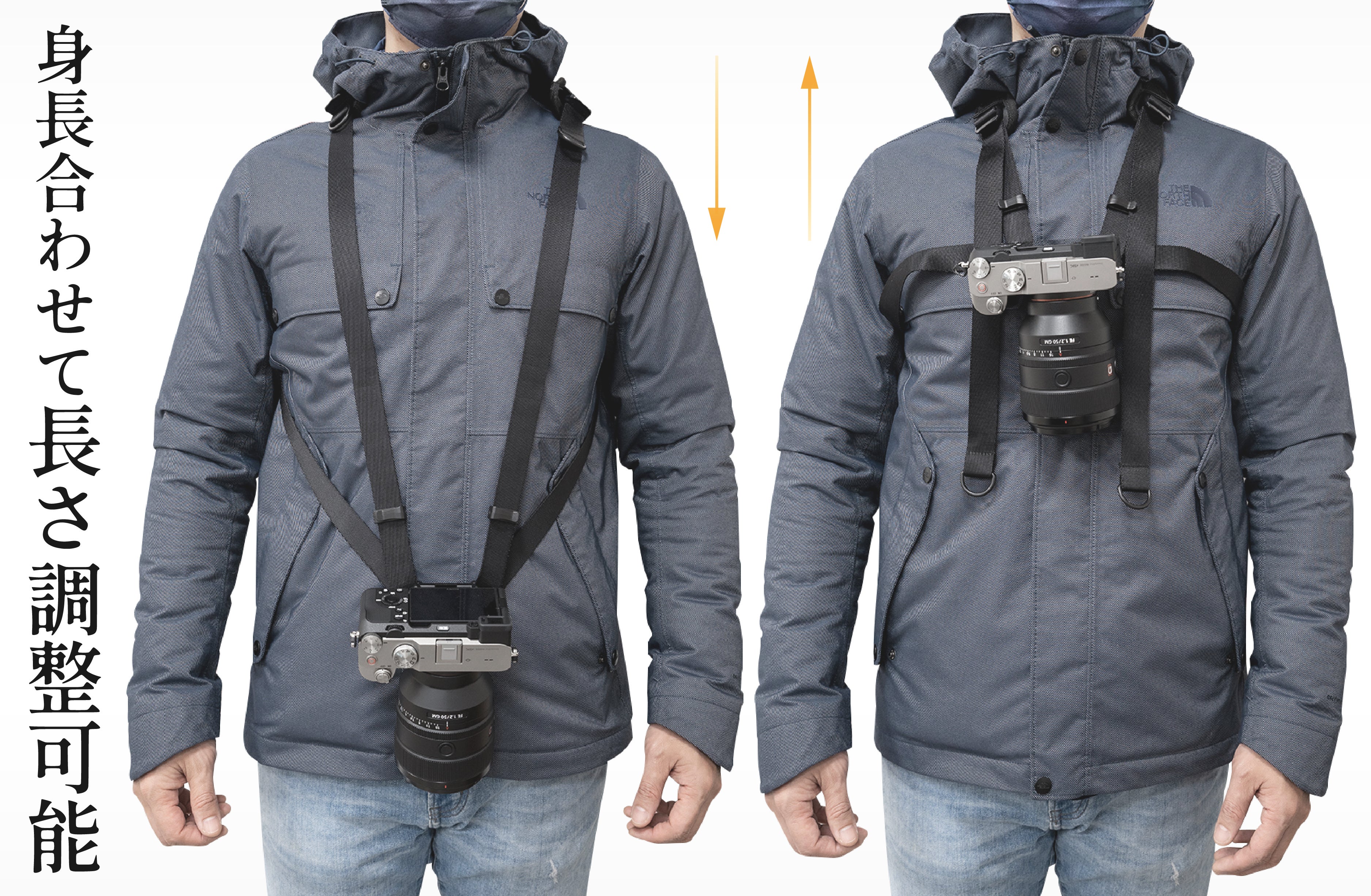 長さは簡単に変更でき、自分の身長にフィットする長さでカメラを持ち運べます。