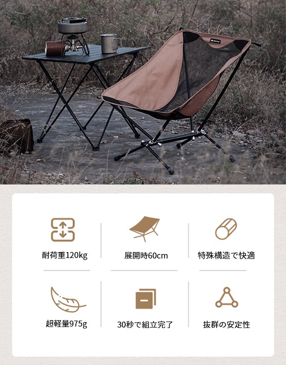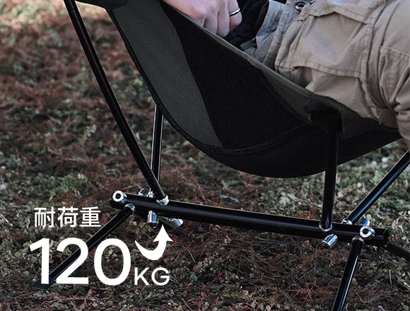 - ● 重さわずか0.97kg、耐荷重120 kg!コンパクトで丈夫なアウトドアチェア