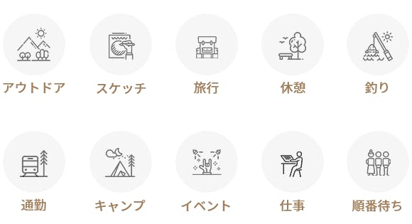 - ● 包まれるような座り心地でアウトドアでも家のように快適&リラックス