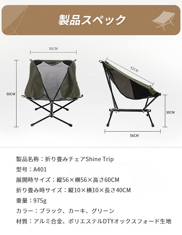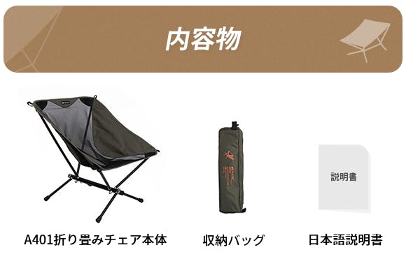 - 大自然の中でキャンプを楽しむ人が増えていますが、キャンプ場では座っていることが意外に多いもの。充実したキャンプライフには、快適なチェアが必需品と言えるでしょう。そこでおすすめしたいのがA401 です!