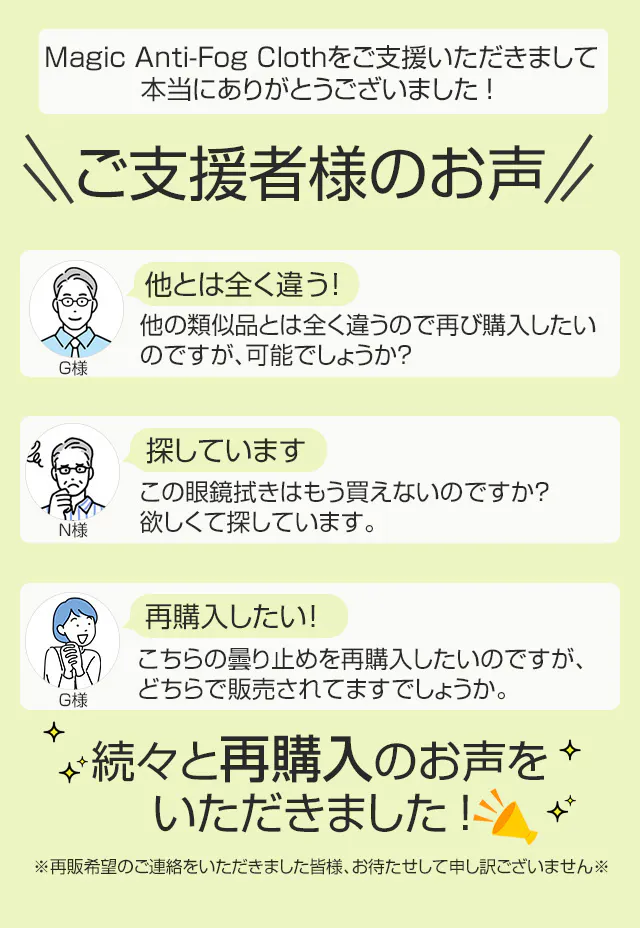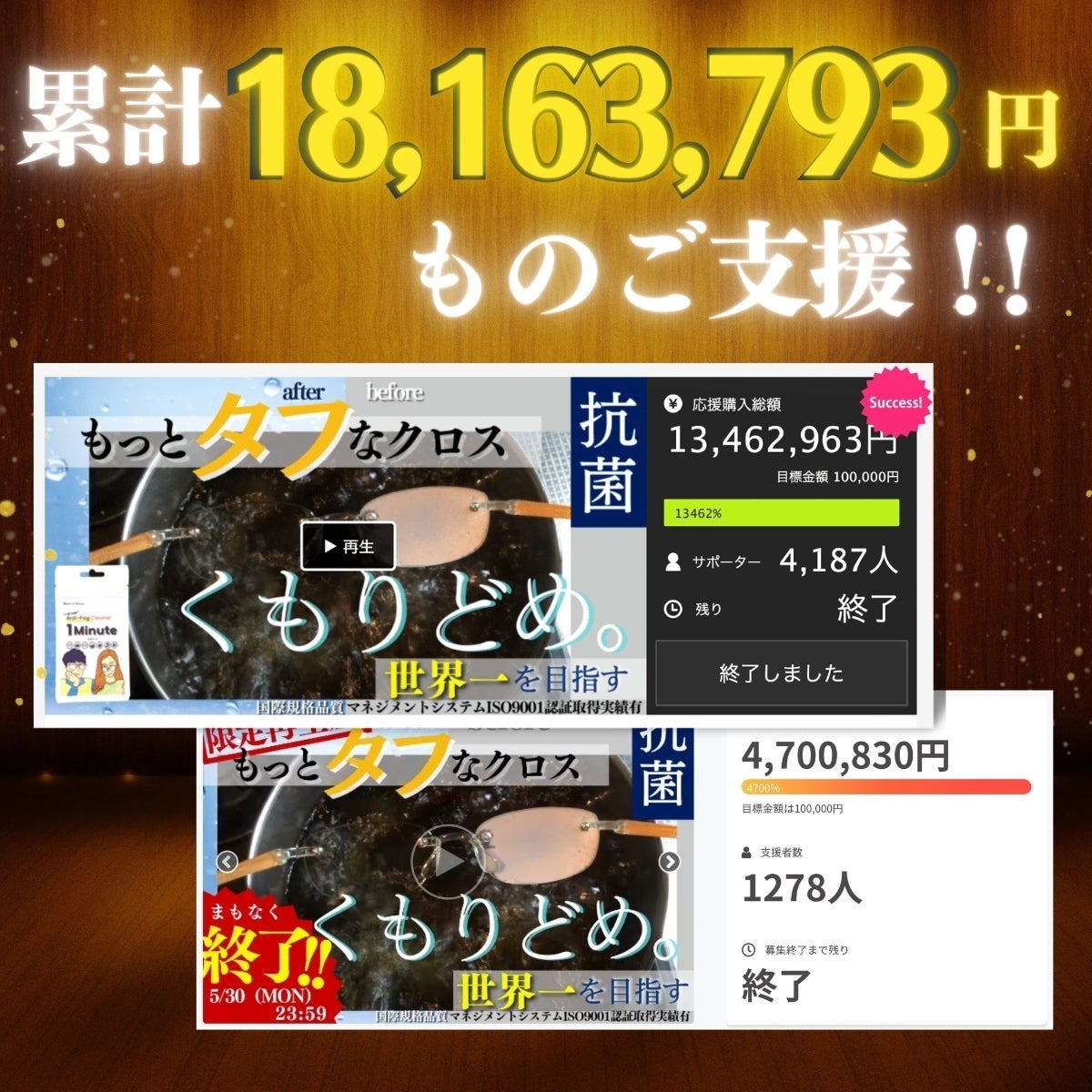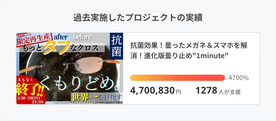 2022年2月からこれまで累計18,163,793円もの支援額を集めた曇り止めクロス、大好評によりおかげさまでプロジェクト復刻が決定いたしました!!