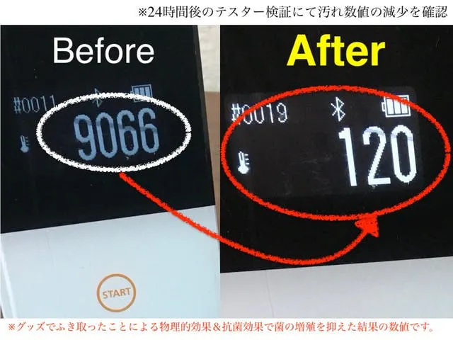 1minuteで画面を拭いて、24時間放置した後の数値がこんなに低下!!