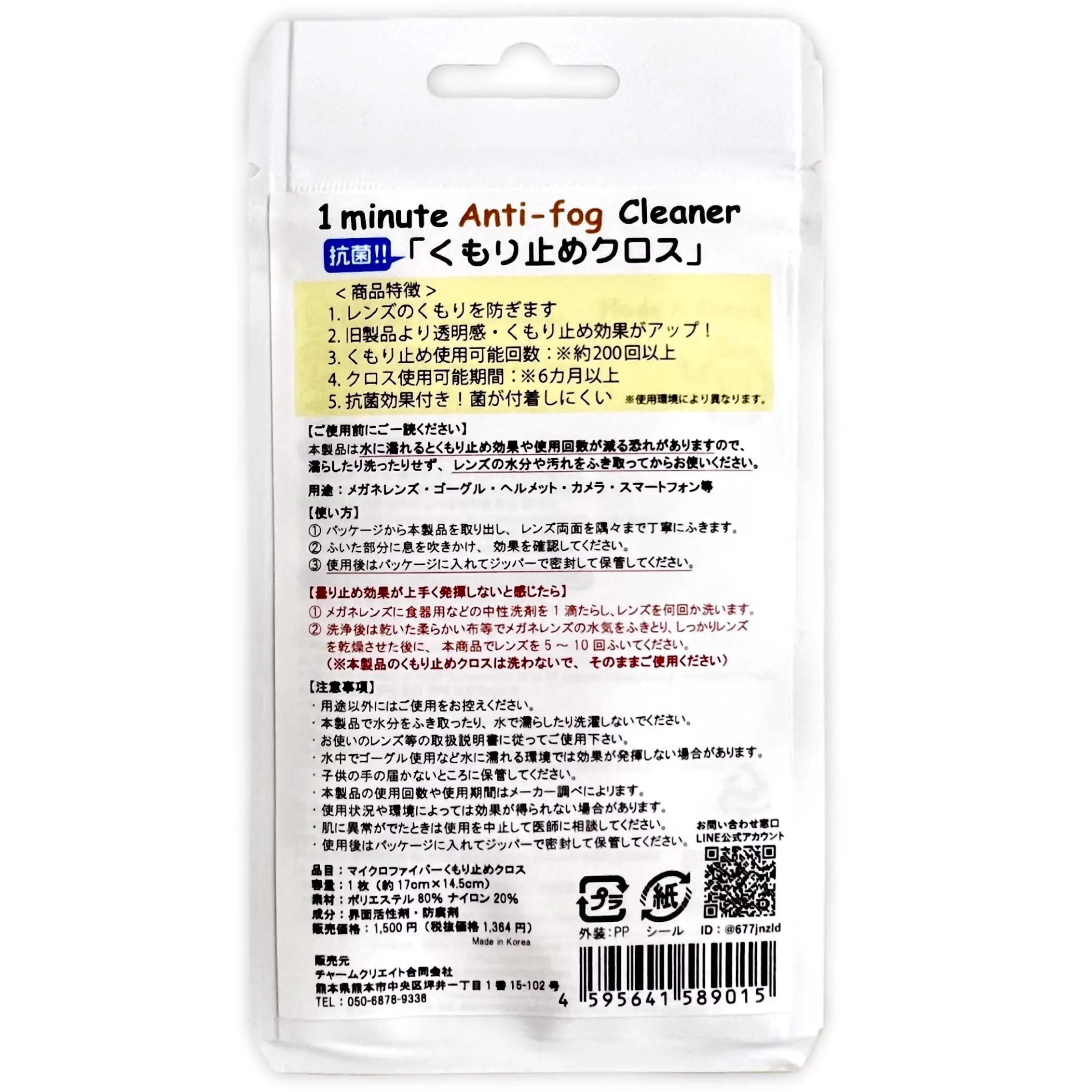 1minute Anti-Fog Cleaner(曇り止めクロス)