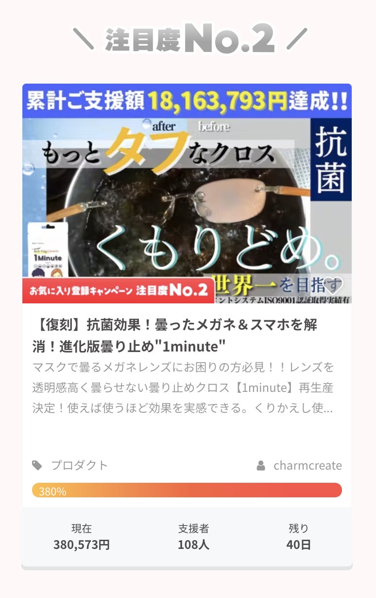 【復刻版】抗菌効果!曇ったメガネ&スマホを解消!進化版曇り止め”1minute”がプロジェクトがさっそくスタートいたしました!