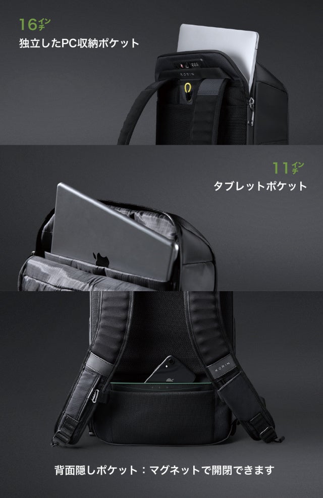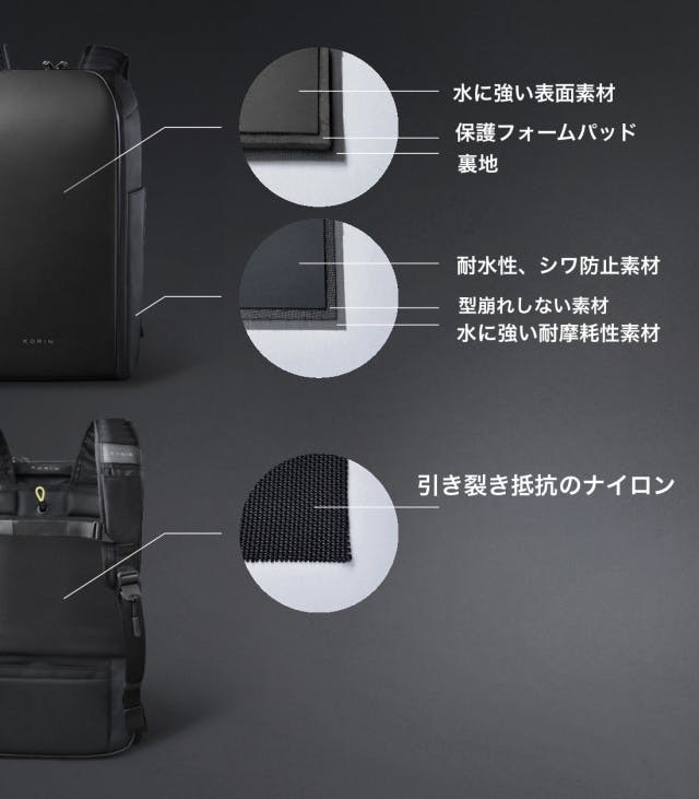 FLIPPACKはKorinDesignの基本コンセプト【安全安心を担ぐ】機能はしっかり持ち合わせていますが、その機能がすべて【隠され】【アップデート】されています。