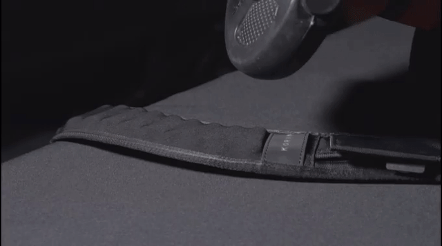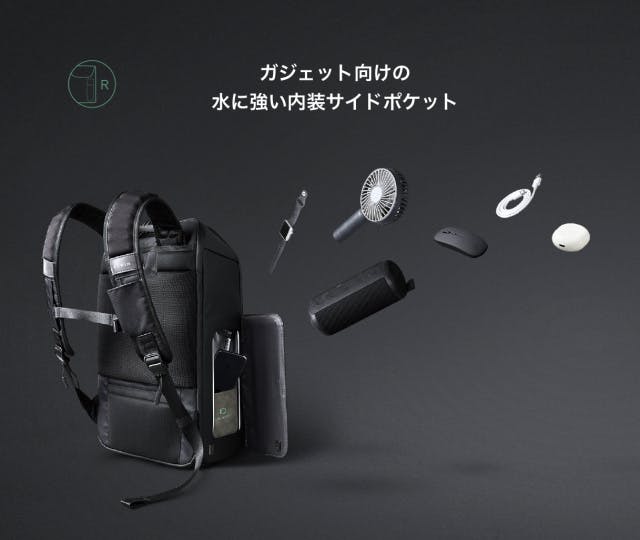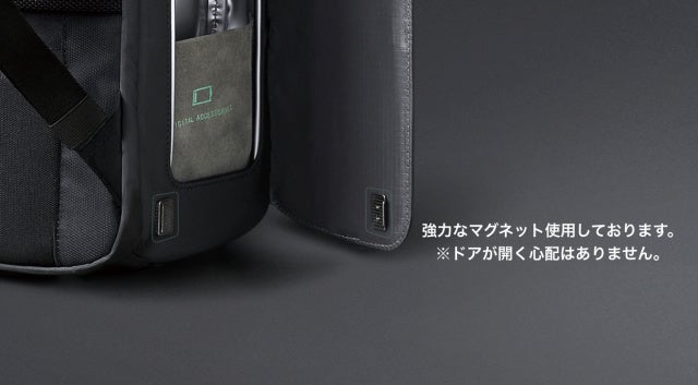 また、隠しポケットは左右で使用目的を変えてあり、右サイドは濡れたものを入れやすいポケット、左ポケットはモバイルバッテリーなどを収納するためにクッション性のある脱落防止ガードを搭載しています。ガード付きなので落としたら割れてしまうものなどを入れてもいいかもしれません。