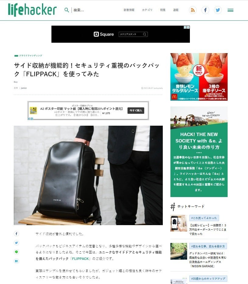 お世話になっております。たくさんのご支援ありがとうございます。ライフハッカー日本版に掲載されました!https://www.lifehacker.jp/article/machi-ya-flippack-review/ぜひご覧ください。よろしくお願いいたします。イルプリモ