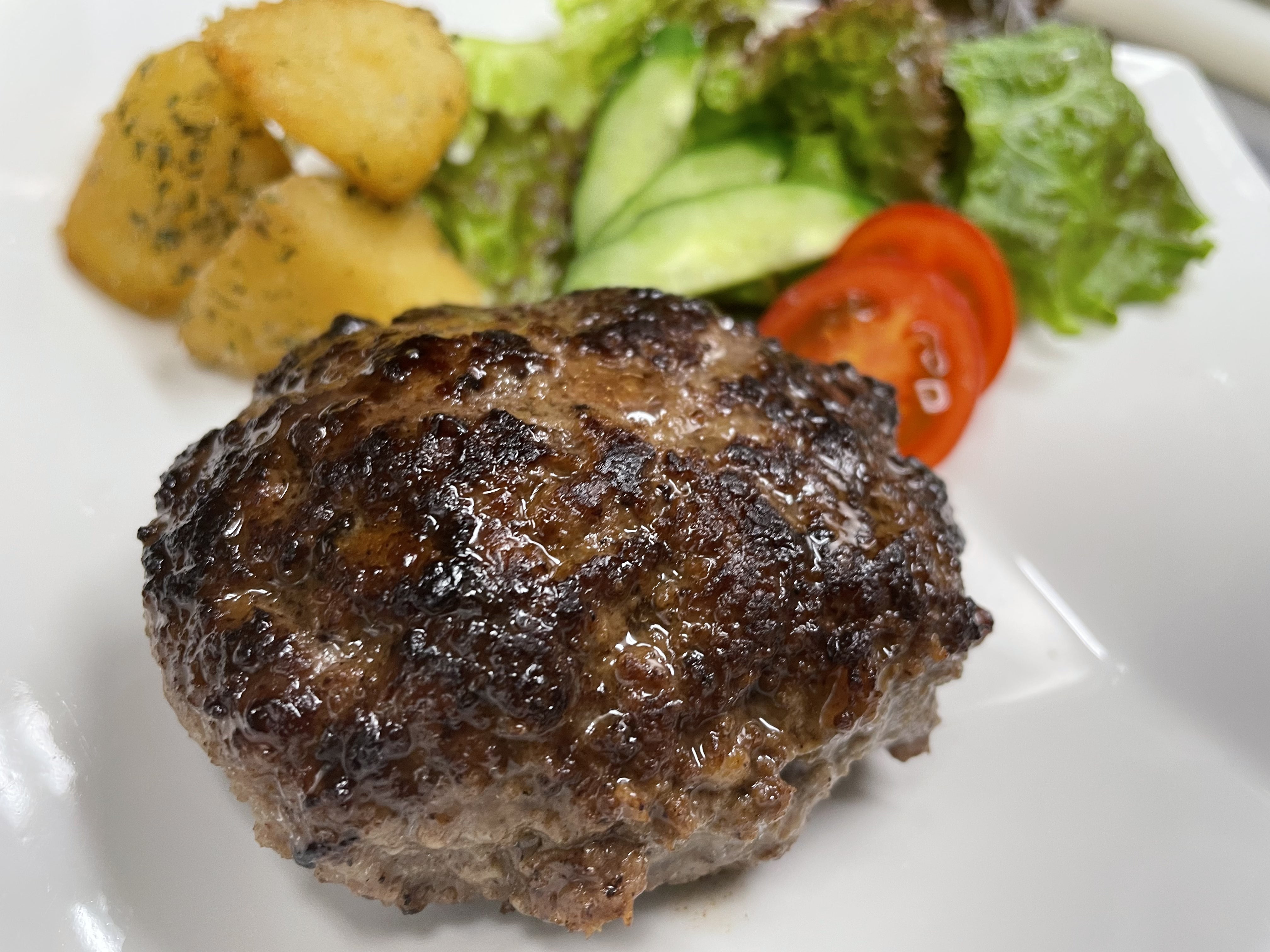 独自の製造方法で開発した甲州牛100%ハンバーグ。