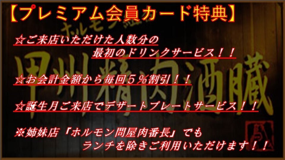 ※姉妹店『ホルモン問屋肉番長』でもランチを除き、ご利用いただけます