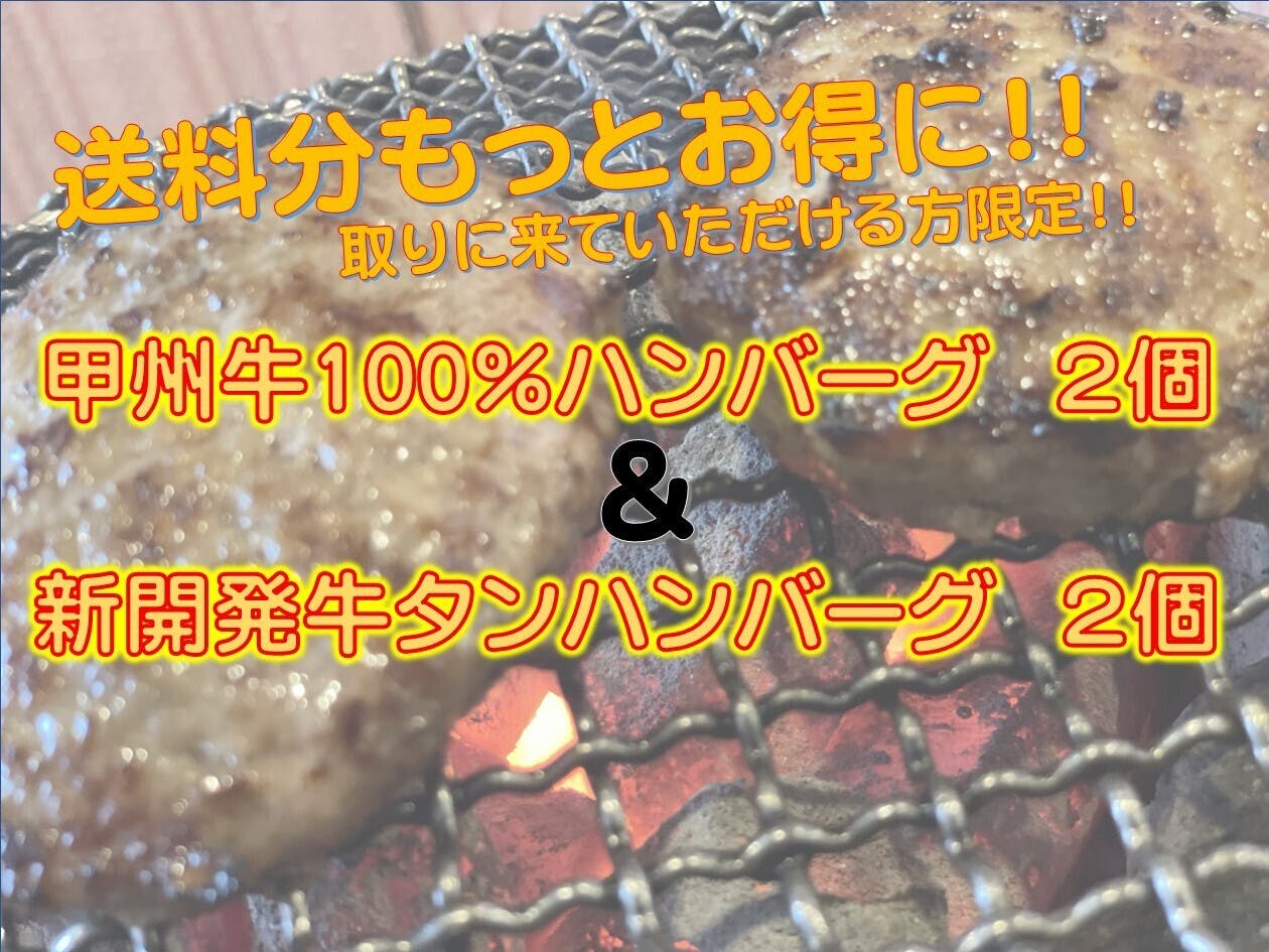 『お試しセット!!甲州牛100%ハンバーグ<180g×2個>+新開発【希少部位ハンバーグ】牛タン100%ハンバーグ<180g×2個>+お礼の手紙』
