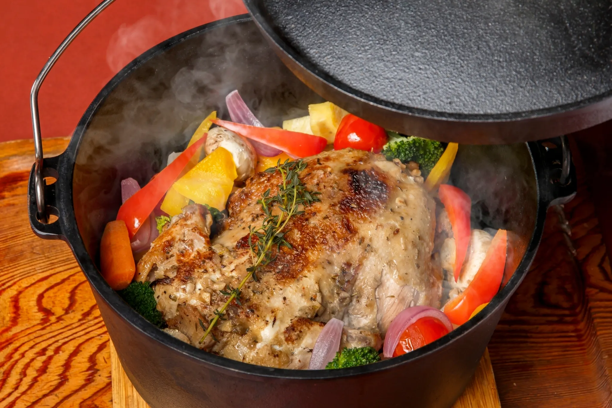 - 蓋を開けた瞬間、チキンから香る爽やかハーブの香り。