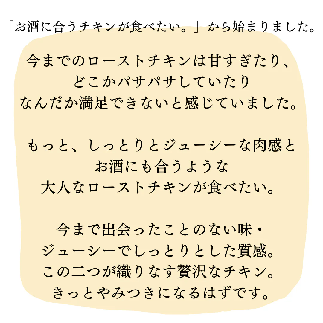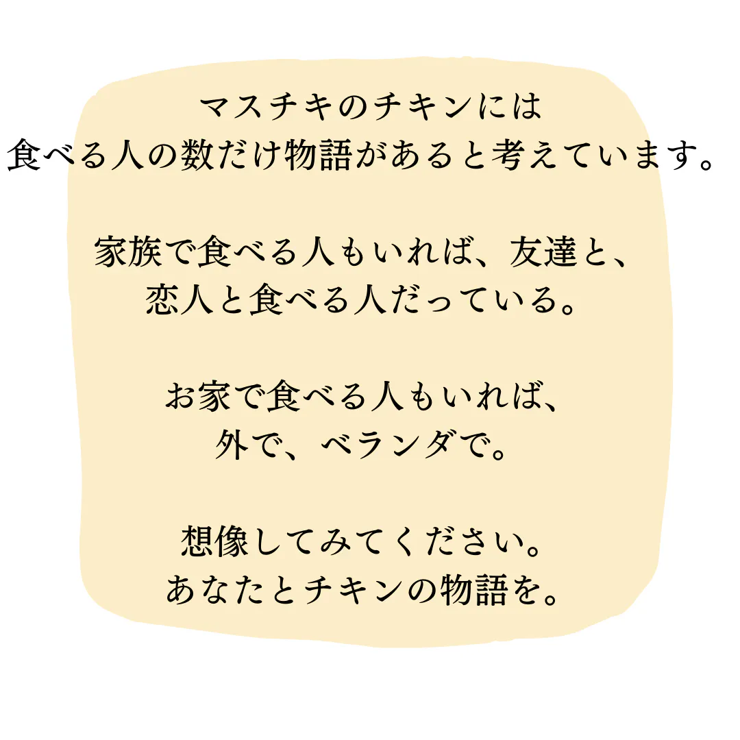 - マスチキのローストチキンは、『お酒にも合う大人なチキン』を目指して作られました。