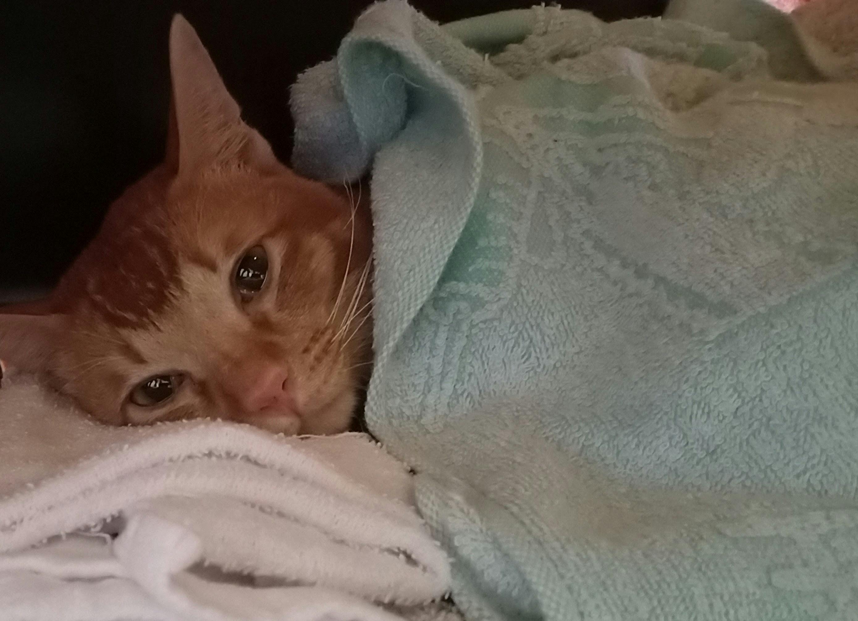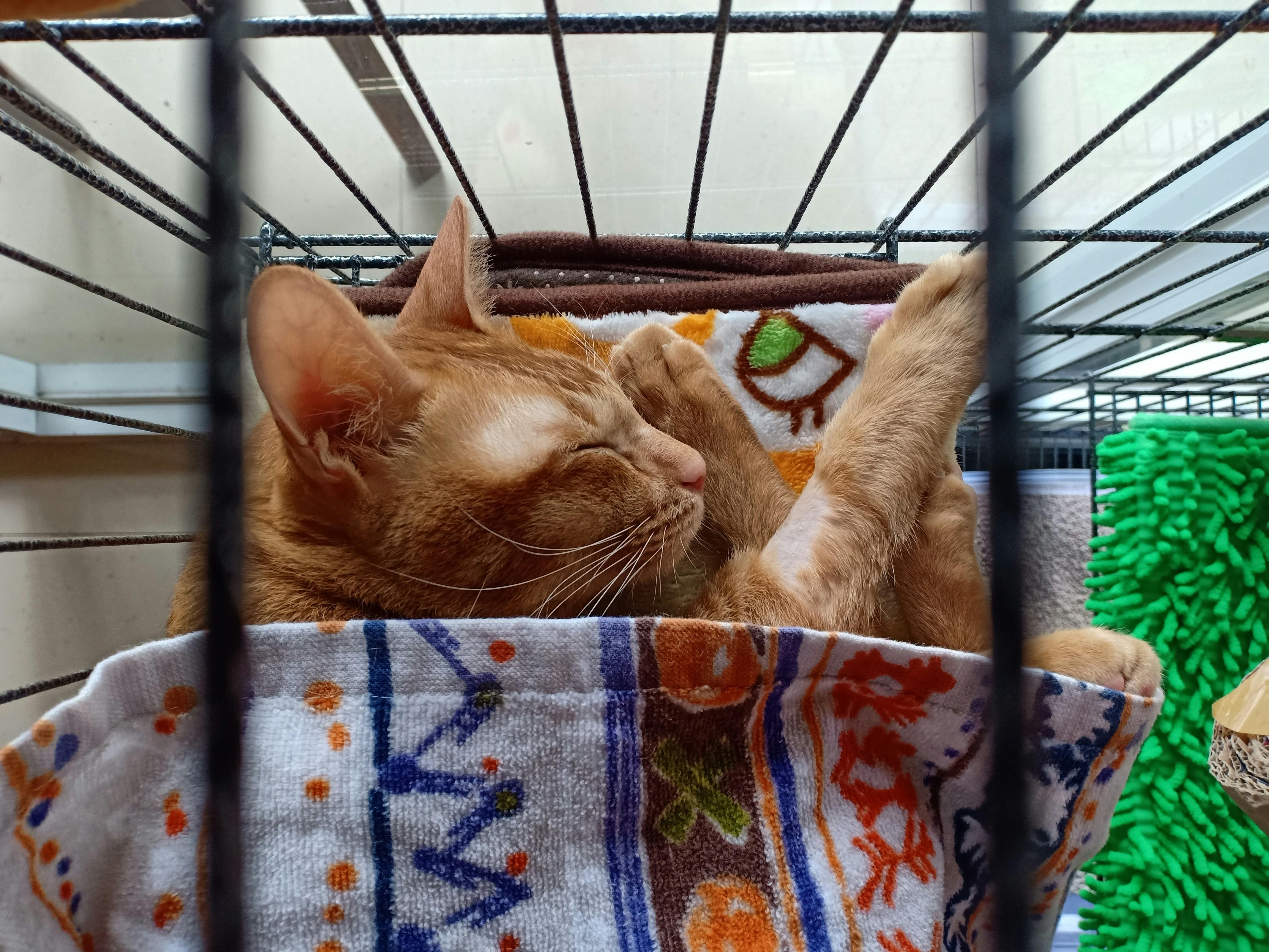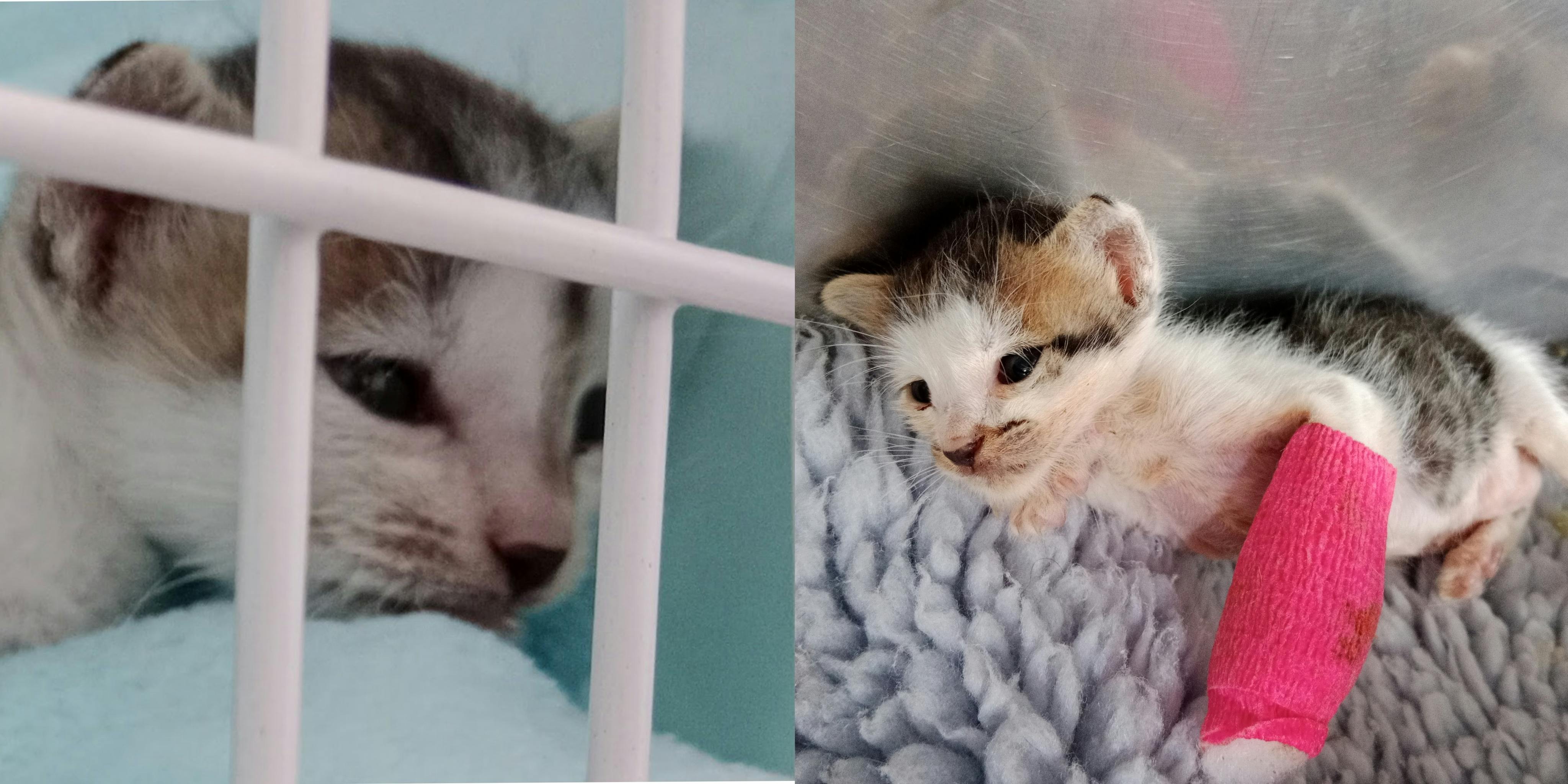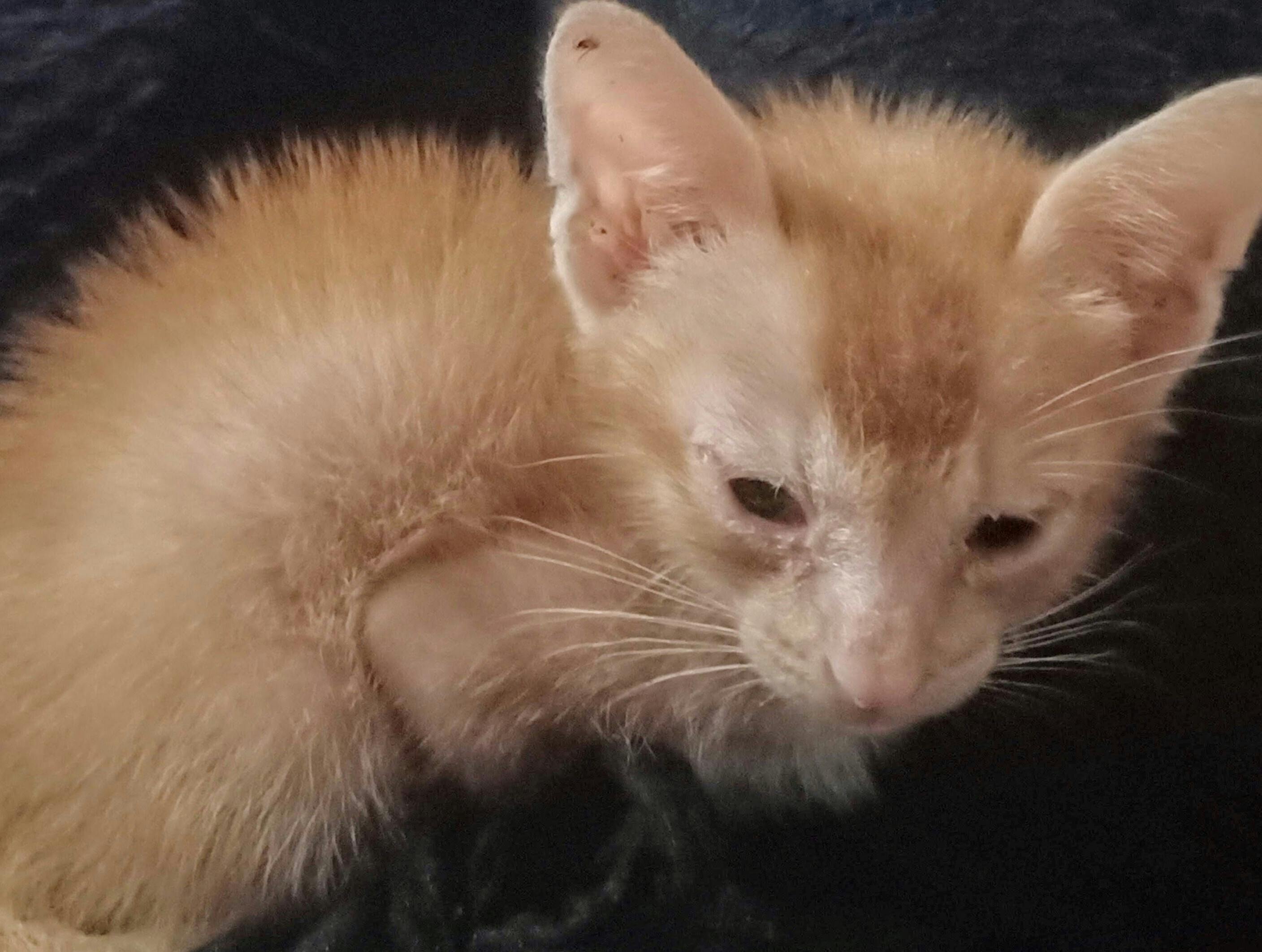2020年7月10日、市場に買い物に行ったときにミャオミャオ泣き声が聞こえ、市場のお母さんに何処で猫ちゃんいるの?と聞いたら、段ボールの中にいるよと言われ開けたら、汚れた体で瀕死の目ヤニがいっぱいで目を開けられない状態の生後1ヶ月ぐらいの子猫がいました。