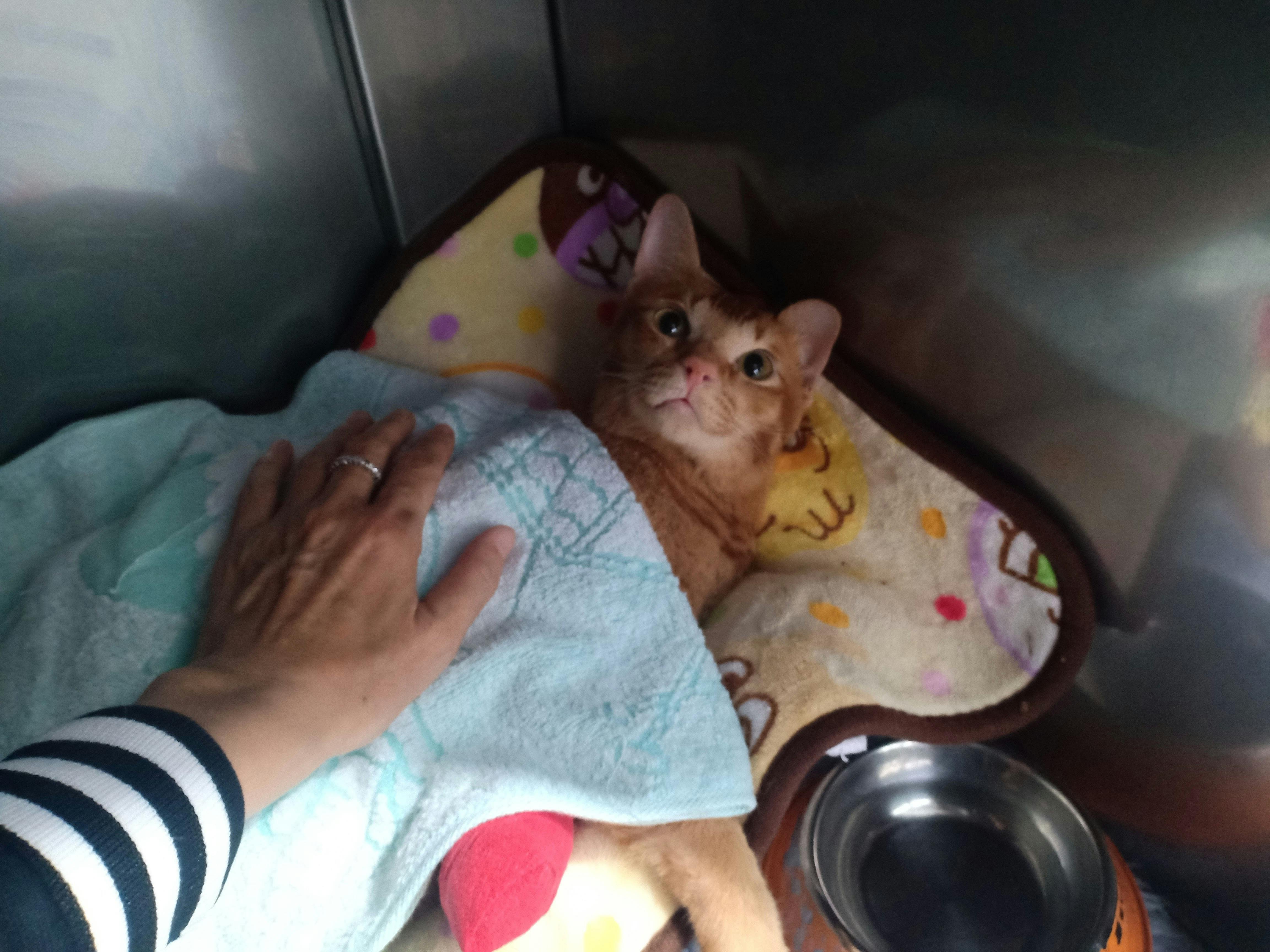 7日午前の面会に行った時には、ずっと起き上がるのもままならなかった花ちゃんが峠を越してくれ自力でご飯を口にするまでなっていました。悲しいことに回復の兆しがみえてきたときにずっと一緒にいた赤ちゃんたちは側に居ない。ゲージの中で泣いて子を探していた花ちゃん、とても悲しそうにしていました。