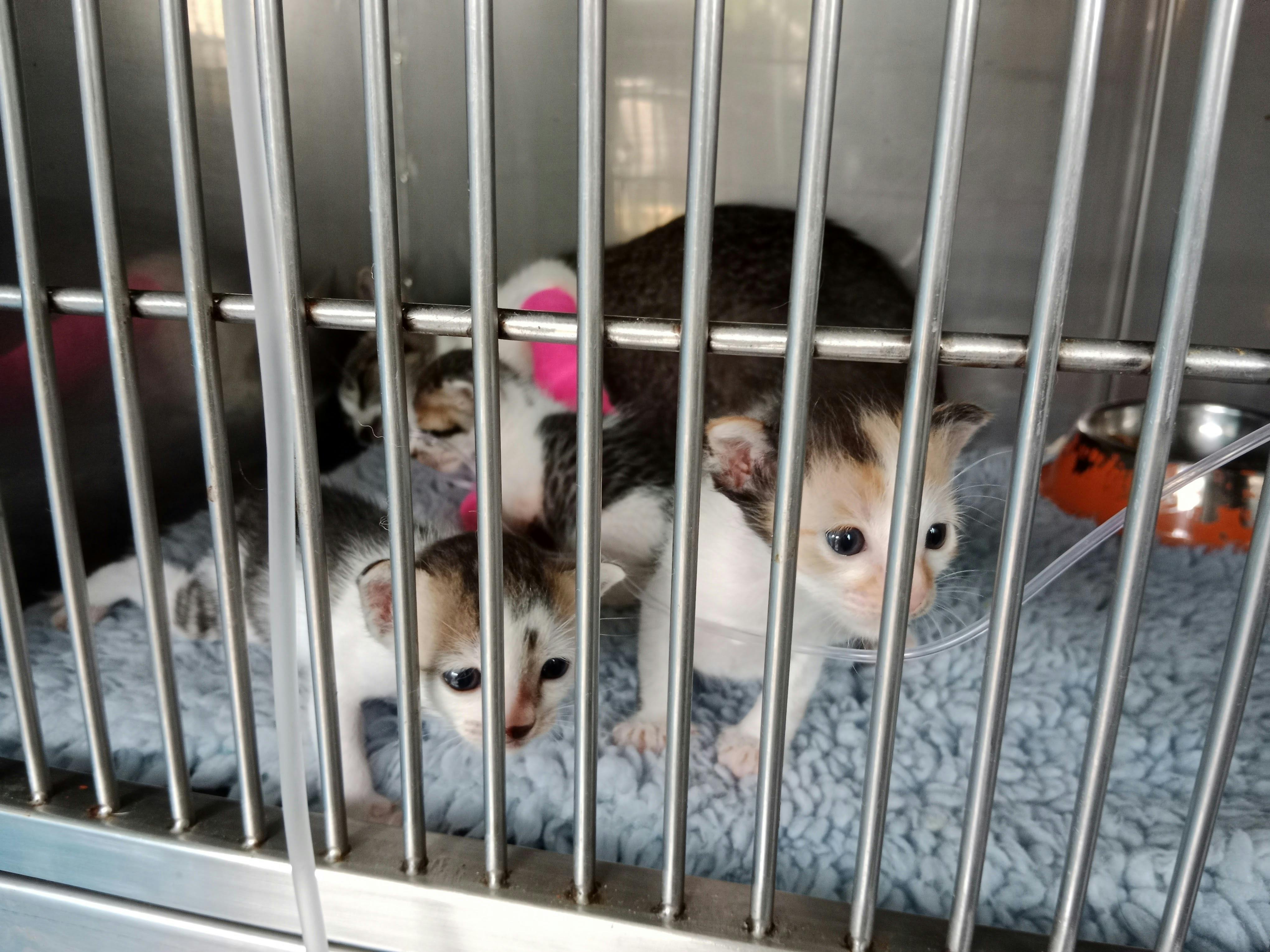 後で分かったのですが、車の窓から市場に向けて3匹の子猫を頬折り投げて行った人がいて、それを目撃した人が車の通りが多い道なので引かれたら可哀想と市場の敷地に入れてくれたそうです。