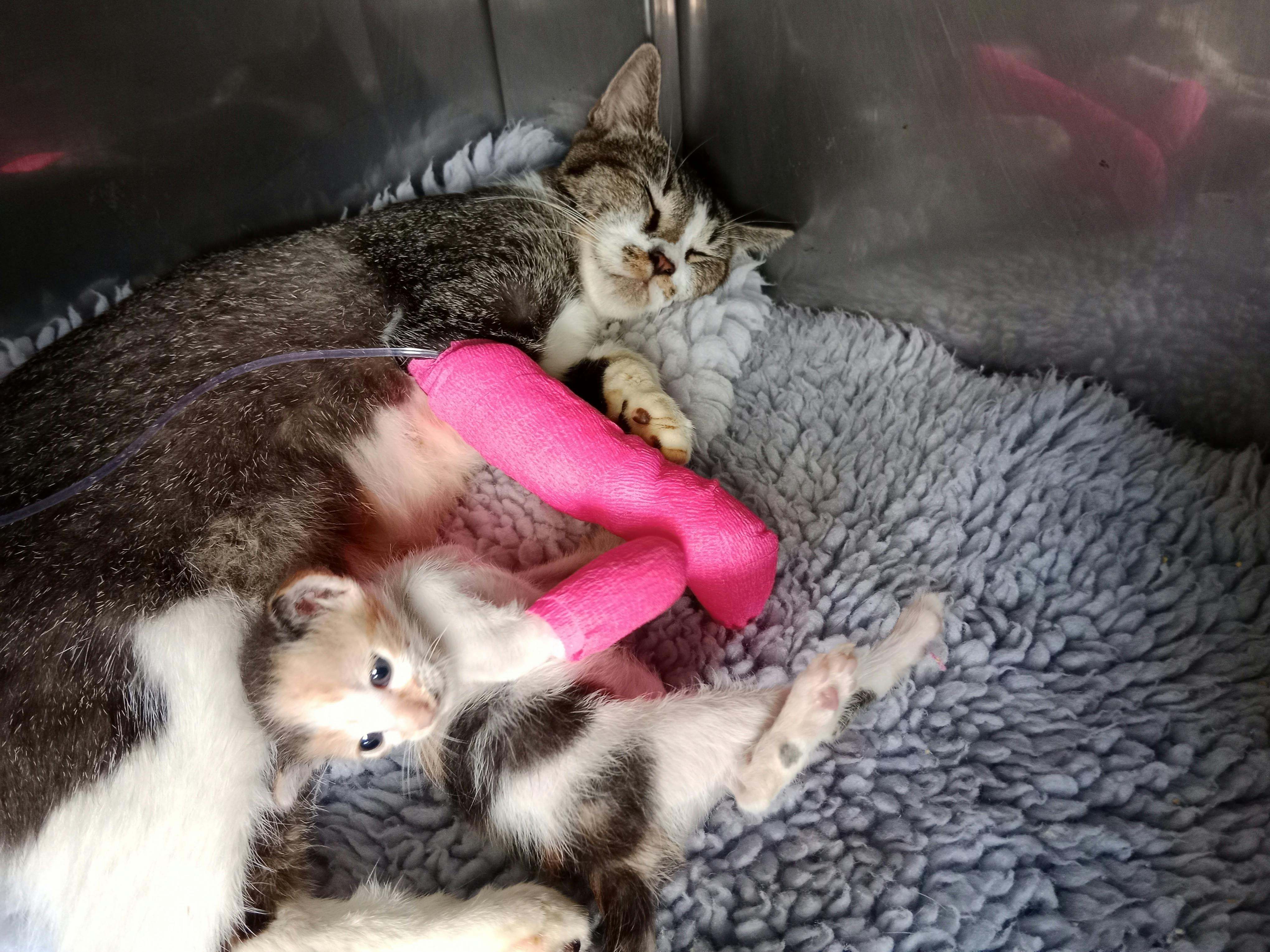 入院したときからは起き上がるのもままならない程ぐったりしていた花ちゃんでしたが、赤ちゃんたちには母乳を与えていました。