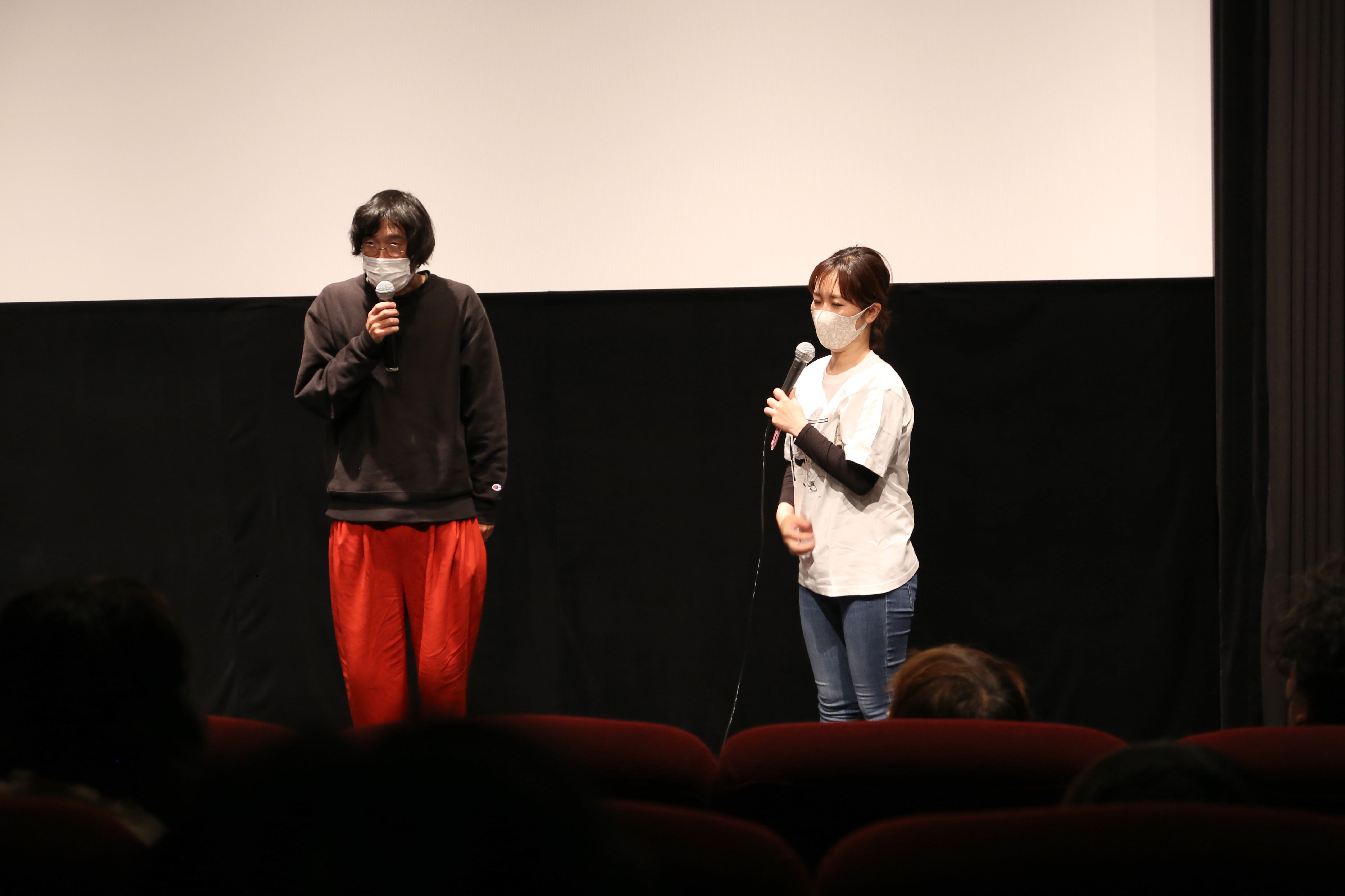 ご支援者の皆様、この度はTHEATER ENYAクラウドファンディングへのご支援、誠にありがとうございます。「第2回演屋祭」の2日目ノミネート作品のレポートをご報告いたします。2日目の「演屋祭」は、2部に分かれて全国のクリエイターの皆さまからご応募頂きました110作品の中から、ノミネート作品として選出された10作品を上映し、金銀銅賞の発表を行いました。受賞結果はこちらノミネート作品上映第一部10:30~12:30一部は10時30スタートで、下記『ㇻの♯に恋をして』『露光時間』『永峰中村飯塚』『幸せな空気』『待ち人来たらず』を上映しました。・『ラの♯に恋をして』(15:06/廣田耕平監督)ストーリー:調律師のアキオは、ある日ピアノの調律を頼まれ老舗呉服店を営む西室家へ訪れていた。そこへ西室家長女のテルがお茶を出しに現れる。しかしテルはアキオの前でふいにオナラをしてしまった。凍りつく空気。恥ずかしさを隠しながらその場を離れるテル。そしてアキオはなぜか彼女に恋をしてしまう……。 上映後には、廣田耕平監督にご登壇&ご挨拶いただき、素晴らしいクルーのメンバーで出会ったことで生まれた作品だということをお話いただきました。 ・『露光時間』(15:00/角洋介監督) ストーリー:光莉(ひかり)は死んでしまったはずの姉の星(あかり)の姿を目にする。星の婚約者であった義人にその姿を見せれば喜ぶに違いないと思い写真に収めようと躍起になるが、かえって彼を怒らせてしまうだけだった。 上映後には、この作品の企画・製作・音楽を担当されたイトウナホさんにご登壇いただき、監督からのメッセージや作品のエンディングソングに込めた想いなどをお話いただきました。 ・『永峰中村飯塚』(12:29/桂木友椰監督)ストーリー:コンビニアルバイトの永峰は恋人・中村の引き合わせで大学の同級生・飯塚と再会する。生き方の異なる2人の価値観は対立し、口論に。それがきっかけとなり中村からも想いをぶつけられる。「このまま自由に生きたい」そんな永峰の理想の前に「普通」と「現実」が立ちはだかる。 上映後には、この作品の桂木友椰監督からいただいたビデオメッセージを観客の皆さんにお伝えしました。 ・『幸せな空気』(07:48/鹿野洋平監督)ストーリー:茹だるような暑さの昼下がり。若いカップルの家へ壊れたエアコンの修理に来ている作業員の男性。彼は黙々と作業を続けるも、なんとカップルのあいだで別れ話が突然浮上して気まずいムードになってしまう。その時、思わぬ来訪者が現れて…。 上映後には、鹿野洋平監督にご登壇いただき、この映画の製作にいたったきっかけについてお話いただきました。・『待ち人来たらず』(18:42/鹿野純一監督)ストーリー:常連客の堀玲奈は察する。喫茶店の店主が、昔の妻を店で待ち続けているとそこで玲奈は店主に、「今日中に待ち人が現れるかどうか」の賭けを持ちかける。 上映後には、鹿野純一監督にご登壇いただきご挨拶いただきました。 ノミネート作品上映第二部13:00~15:00・『マンガガールズ』(09:45/大門嵩、祁答院雄貴共同監督)ストーリー:学校の中で1人黙々と漫画を描いているといつも誰かが私の後を付けてくる。「す、ストーカーか!??」私は、そいつから逃れる為に車のトランクに。「ふぅ、ここなら見つからないだろう。」と思った矢先、トランクが閉まって閉じ込められてしまった。そして携帯の電源も落ちた。ヤバタニエン。 上映後には、共同監督をつとめた大門 嵩さんから、エッジの効いたメッセージビデオをいただき、会場が湧きました。・『kidofuji』(11:41/下社敦郎監督)ストーリー:東京都杉並区高円寺にある立ち飲み屋「きど藤」で、ある夜に起こった男女三人の出来事。緊急事態宣言が解除になり営業再開したきど藤は一時的にいつもと変わらぬ活気を取り戻すが…。 上映後には、下社敦郎監督にご登壇いただき、この映画の独特なカメラワークの背景などについてお話いただきました。・『Veils』(なかやまえりか監督)ストーリー:結婚写真を撮影したいLGBTQあゆみ(28)と紗香(28)はLGBTQ当事者として結婚写真の撮影を予定している。『LGBTQ対応可』のフォトサロンに問い合わせるが、返答に落胆と怒りを隠せない。2人の幸せが満たされる場所はあるのか。ご登壇:ムラタマリエさん(プロデューサー・助監督)上映後には、この作品のプロデューサーのムラタマリエさんにご登壇いただき、作品に込めた想いや監督が主演女優を勤めることになった背景についてお話いただきました。・『お願いだから、唱えてよ』(16:21/佐島由昭監督)ストーリー:女が帰宅すると、家に知らない男がいた。男は自分が幽霊だと名乗る。パニックになるが、そんな彼女に頼みがあるという。果たしてその頼みとは何なのか・・・?! 上映後には、佐島由昭監督と、この作品のプロデューサー、脚本、主演をつとめた山口森広さんにご登壇&ご挨拶をいただきました。・『咲の朝』(18:13/大西千夏監督)ストーリー:田舎から引っ越してきた高校生・咲