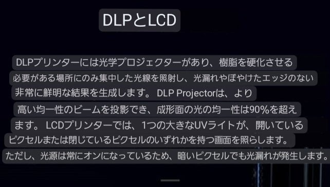 LCDプリンターは、全ての光を1つのピクセルに収束させるため、モデルの端に凹凸や影ができる可能性があります。