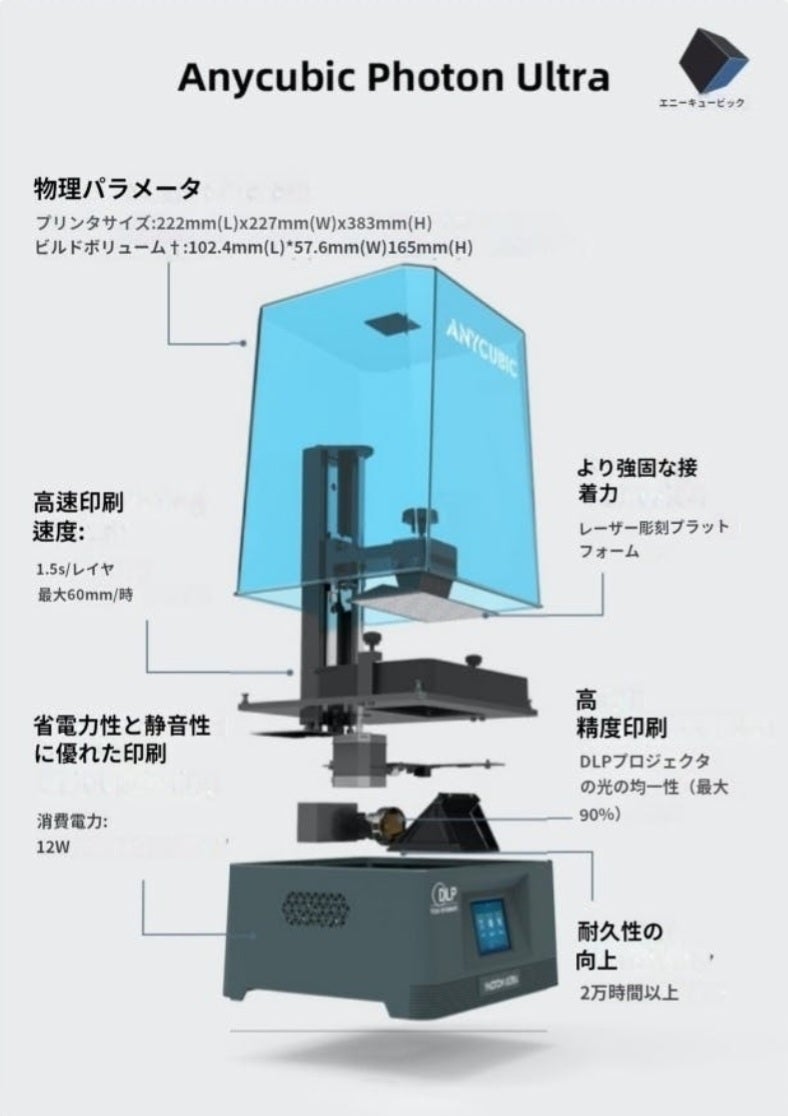 今回、精度の高いDLPプリンターのAnycupicPhotonUltraが登場しました!