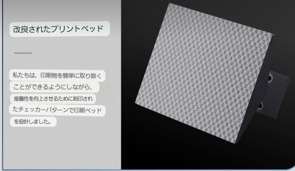プリントベッドは、接着性とプラットフォームの均一性を高めるためにレーザーエッチングされており、プリントの成功率と安定性が向上しています。