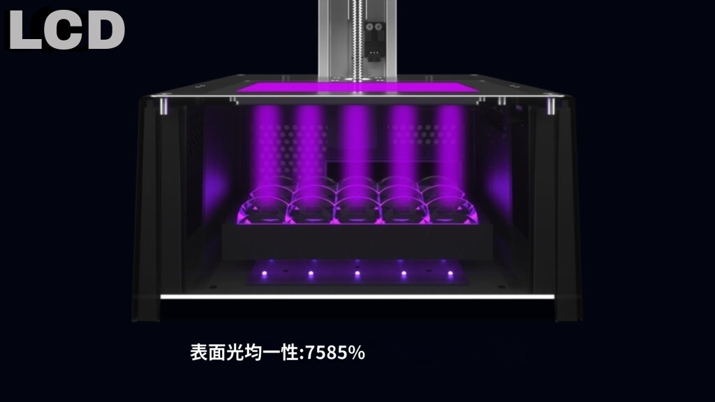 ◼️樹脂印刷のLCD側では、モノクロスクリーンの使用により、生産時間が大幅に短縮され、レイヤーの硬化時間は1.5〜2秒になりました。