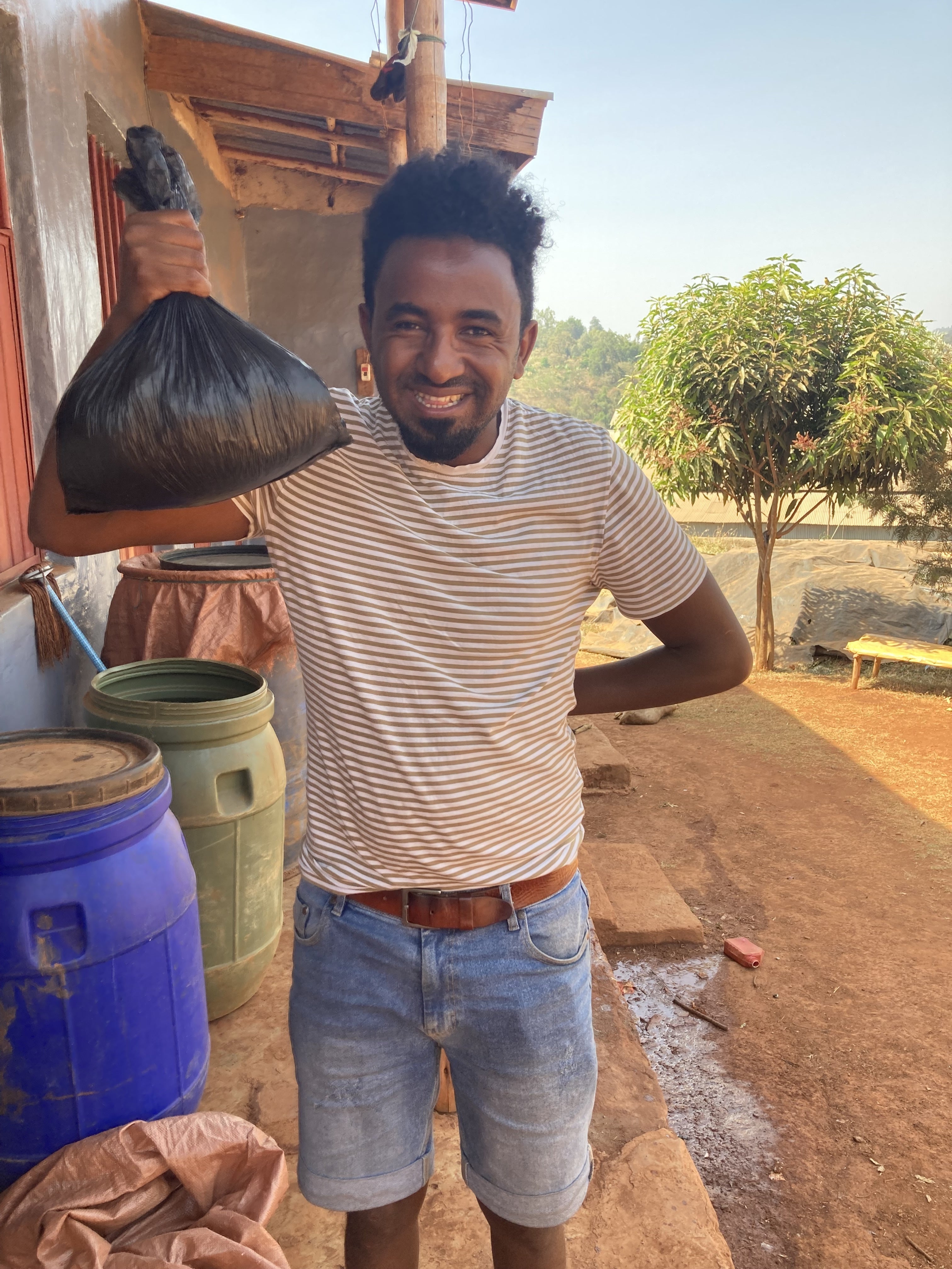 コーヒー農園主のDawitは、この牛を見て「去年は雨が降らなすぎて僕たちの農園では収量が40%も減ってしまったんだ」と言っていました。