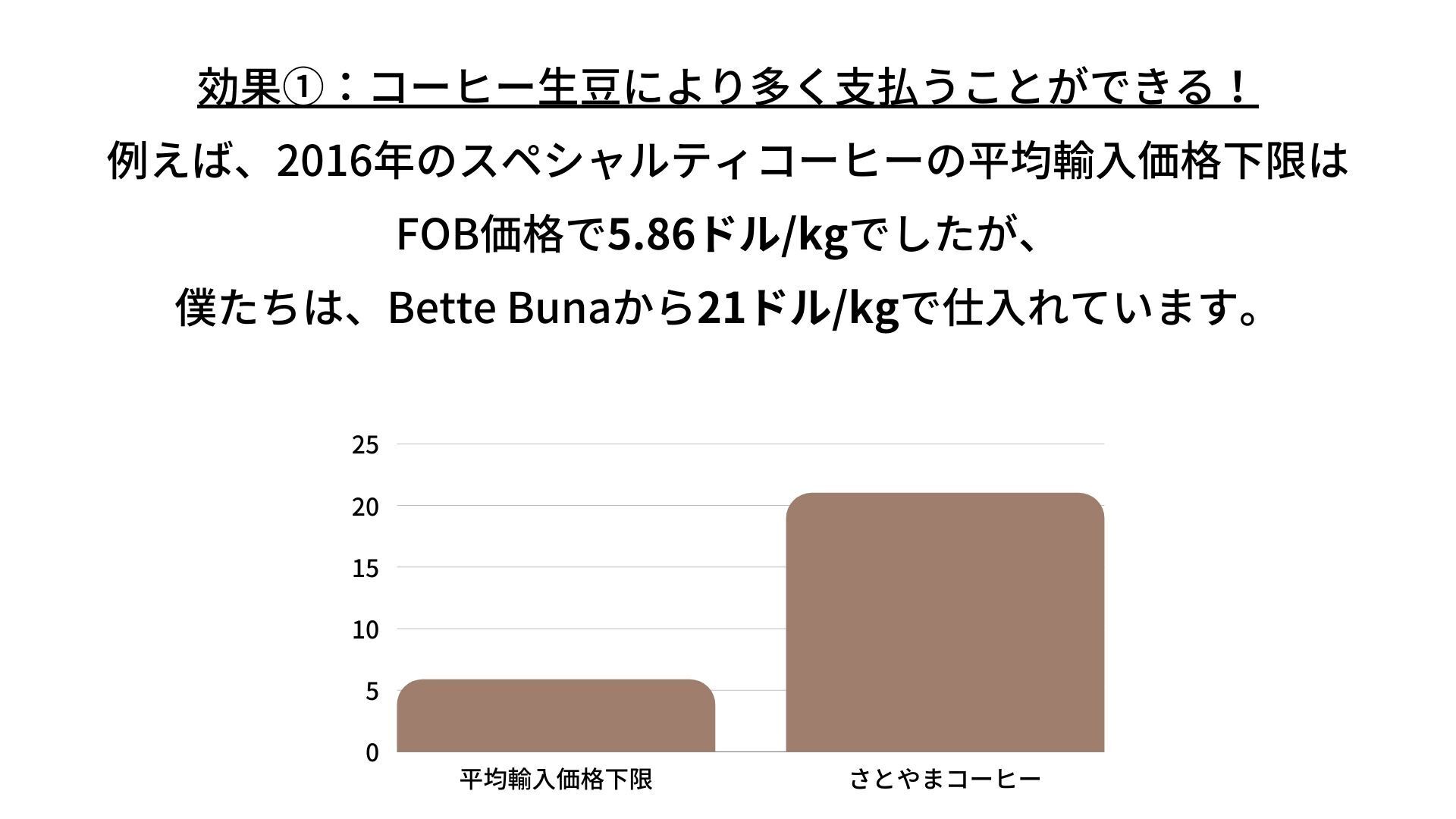 確かにコーヒーを高く買い続ければコーヒー生産者は潤うかもしれません。