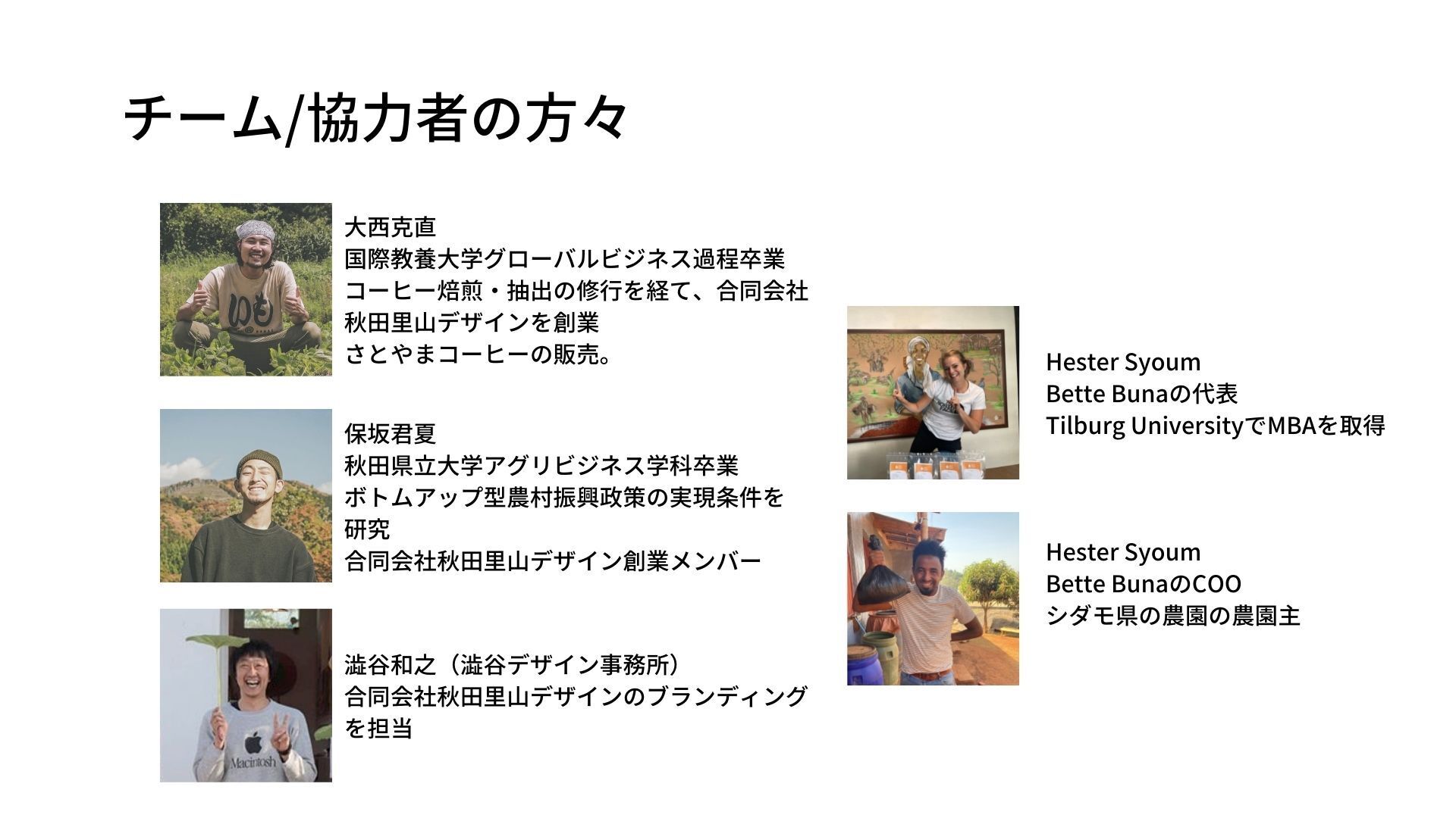 でもそれでは根本的な解決にはならない。そうしてBette Bunaは、地域の起業家を支援する活動をしています。実際今は、「コーヒー苗木プロジェクト」「カメラマン」「小売店」などの事業が合計5つ立ち上がっています。