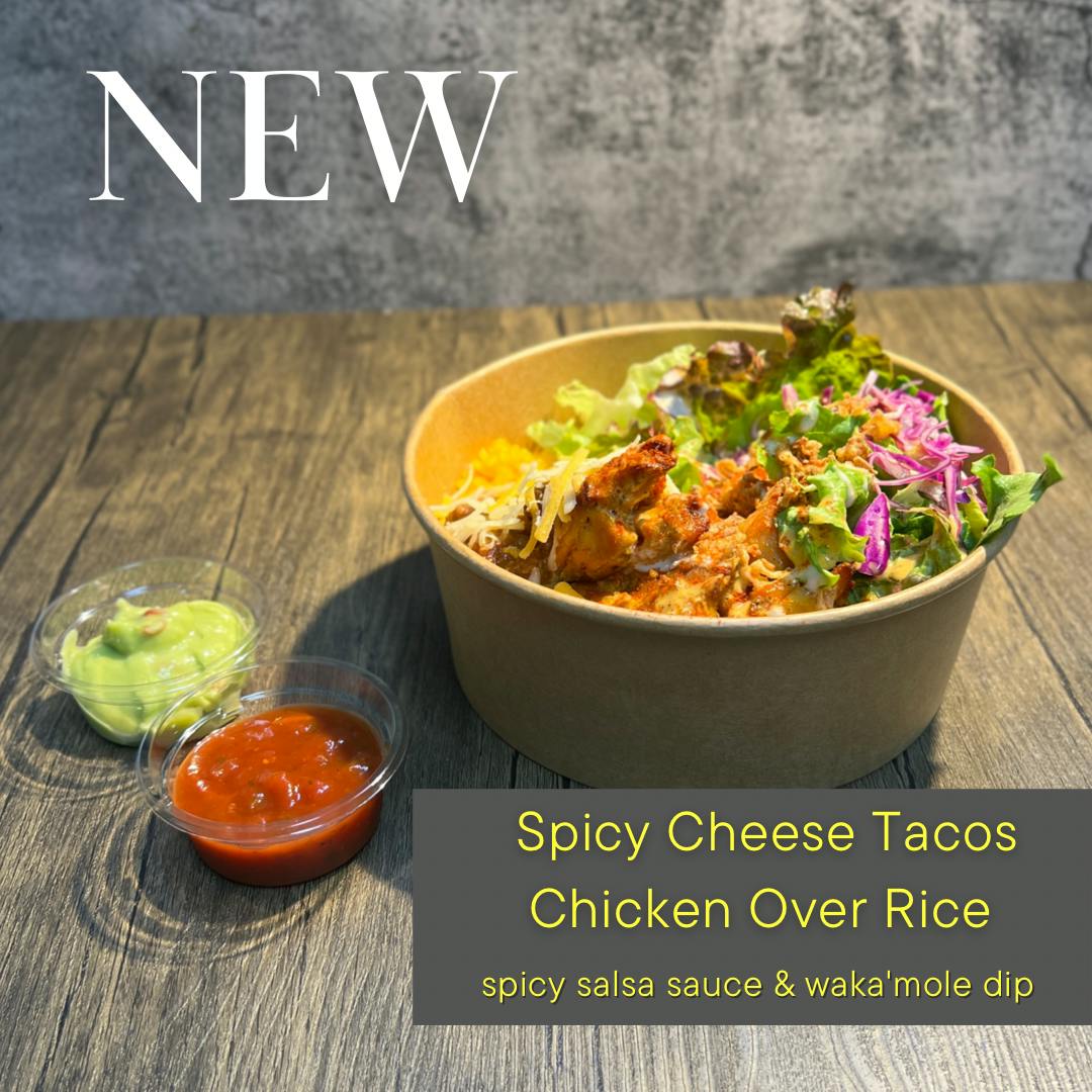 今回は、大人気のスパイシーチーズタコス・チキンオーバーライスについてご紹介いたします。