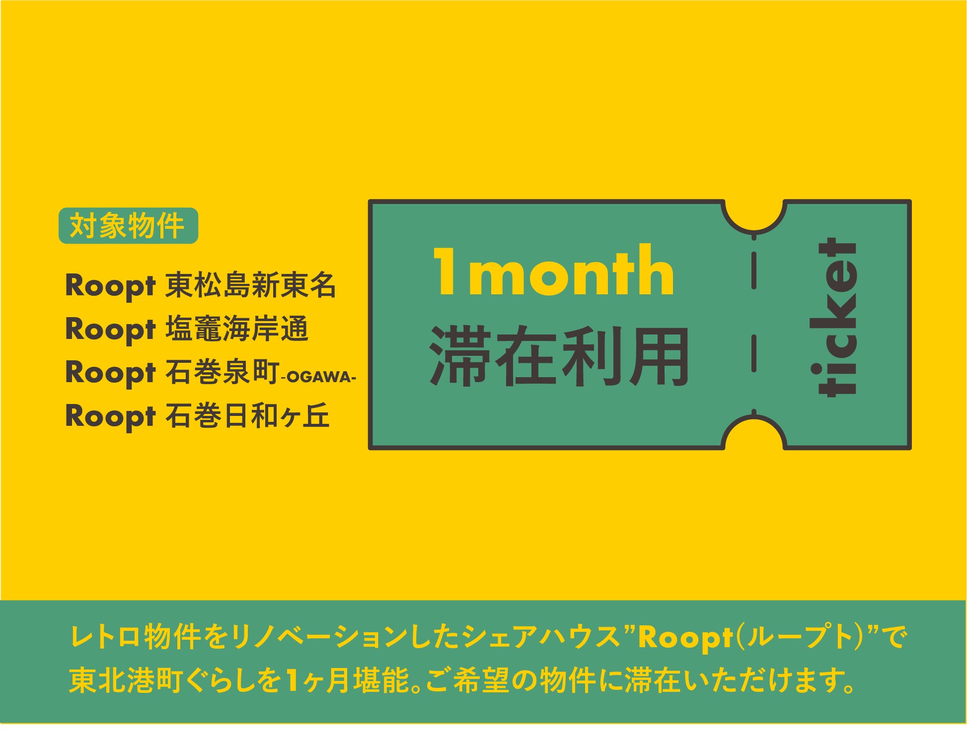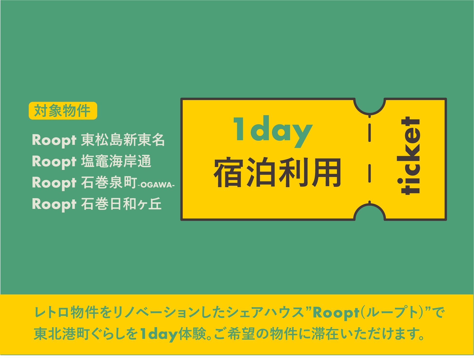 *チケットに含まれるもの:①Roopt物件への宿泊(2泊分)、②周辺地域の街歩きイベント、③シェアハウスでのイベント参加券(夕食付き)が含まれます。